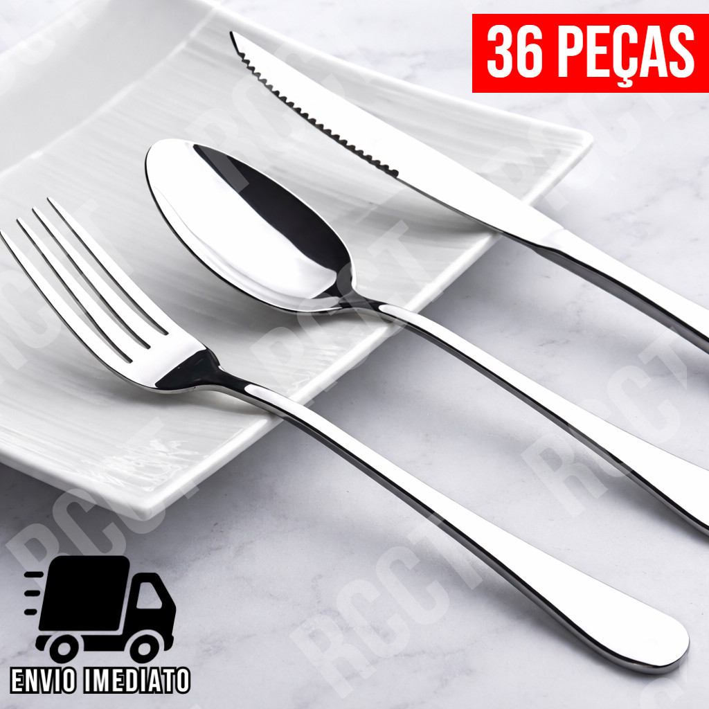 Jogo de Talheres Premium Aço Inoxidável Faca Ponta Garfo e Colher Mesa Posta Luxo