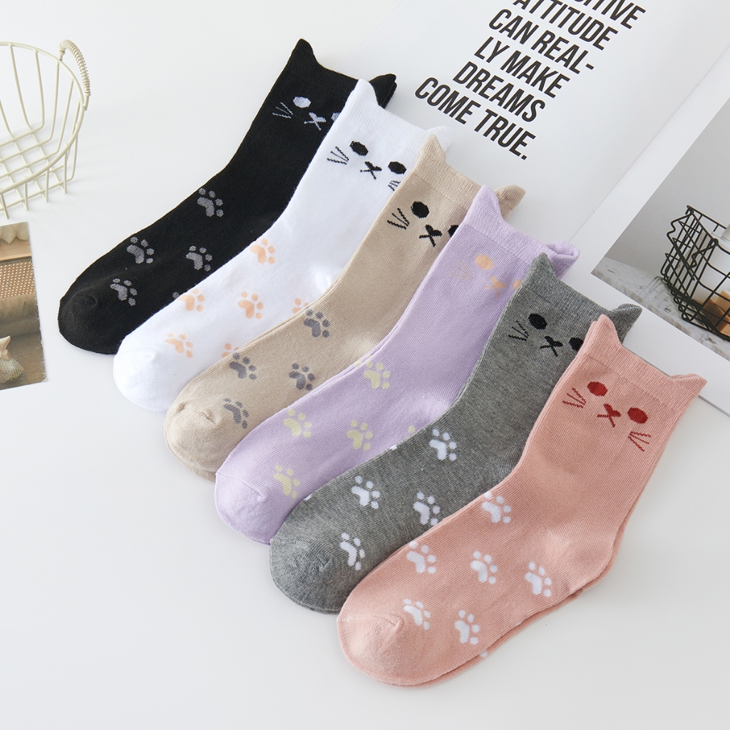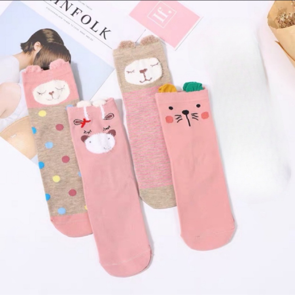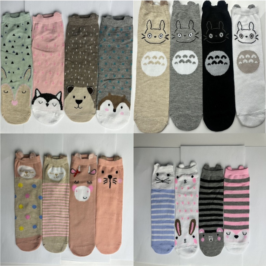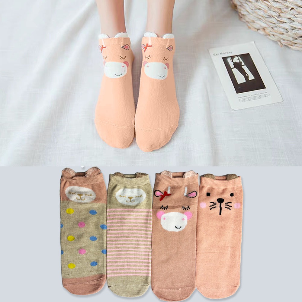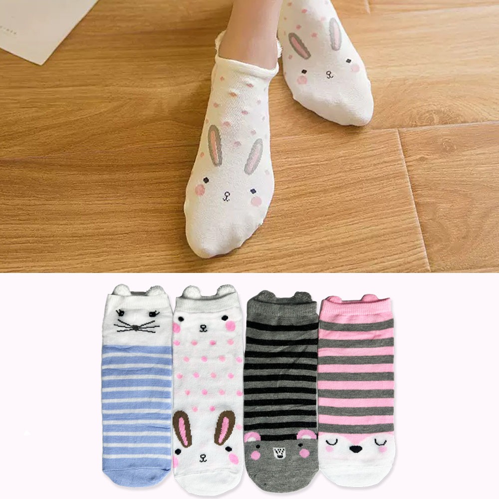 Kit12 pares de meias femininas aconchegantes com animais fofos e orelhas, tamanhos 35-40
