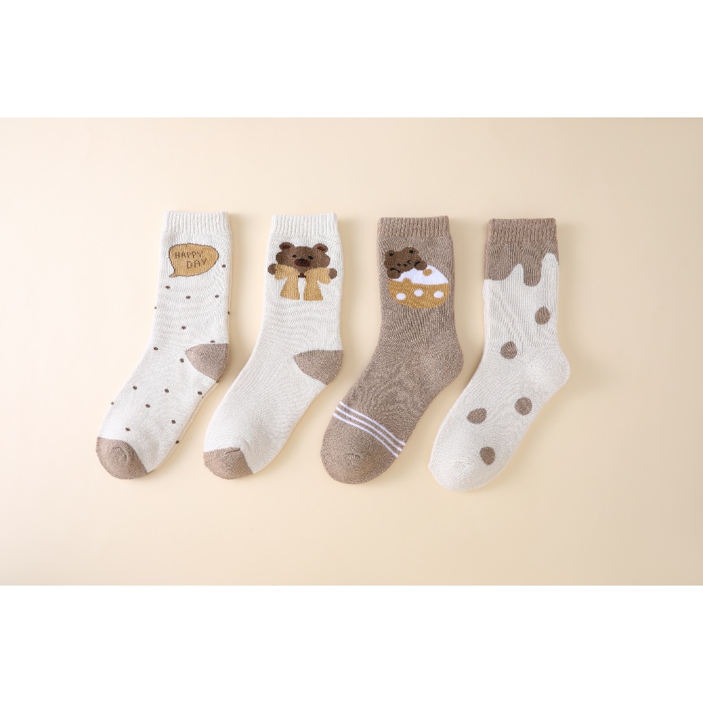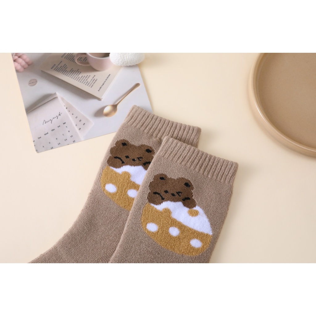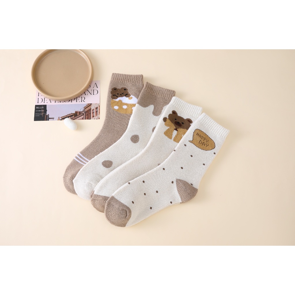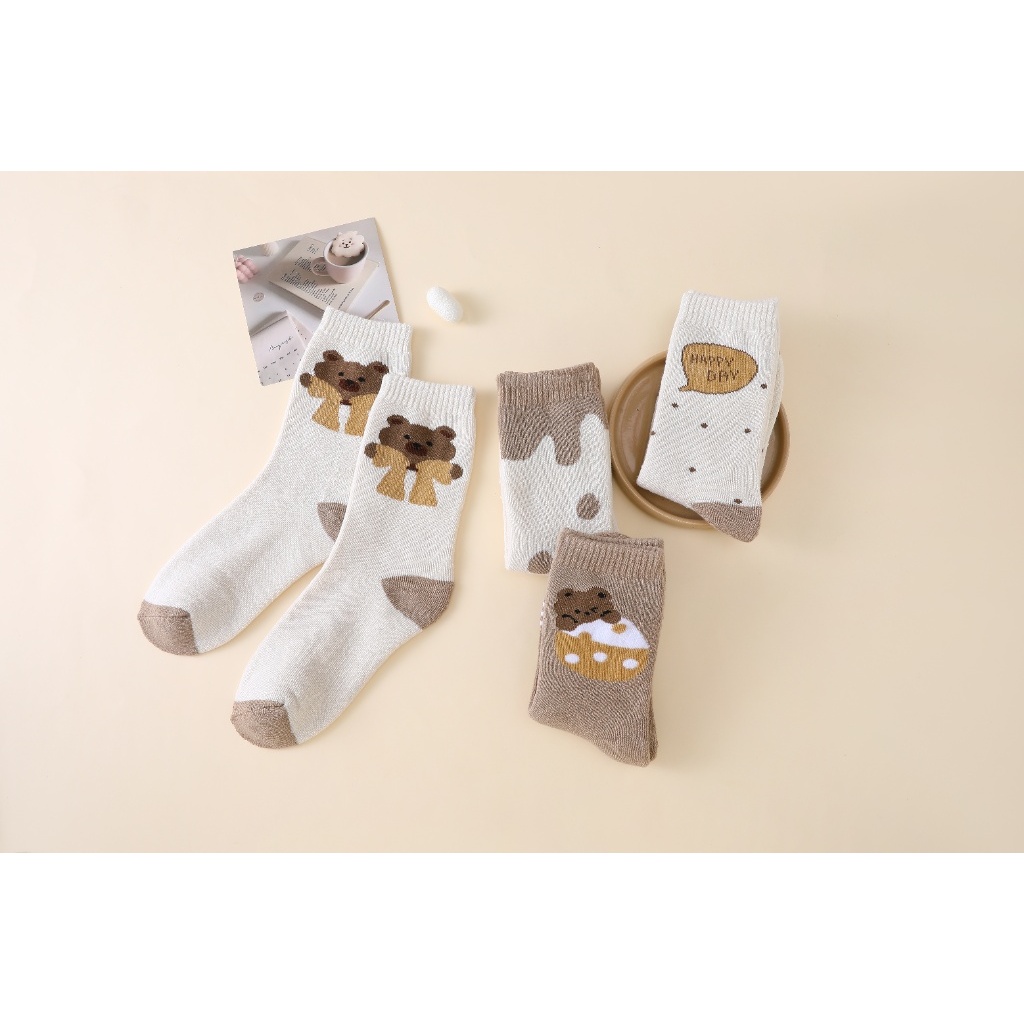 KITS DE MEIAS CANO LONGO FEMININA ESTAMPAS FOFAS DE URSINHO E BOLINHAS