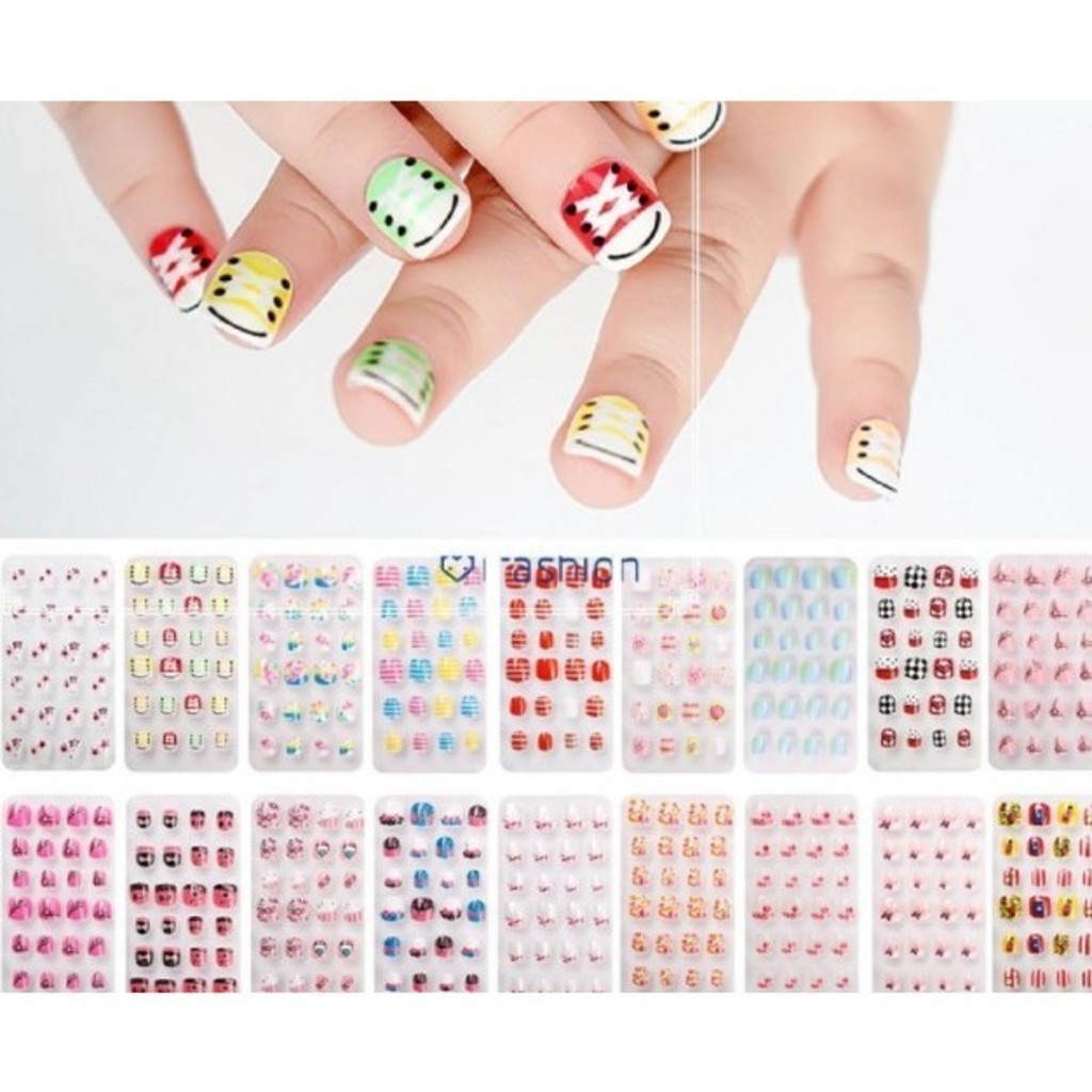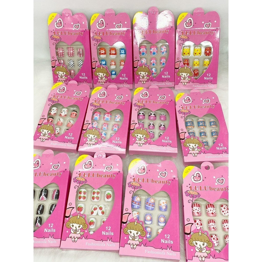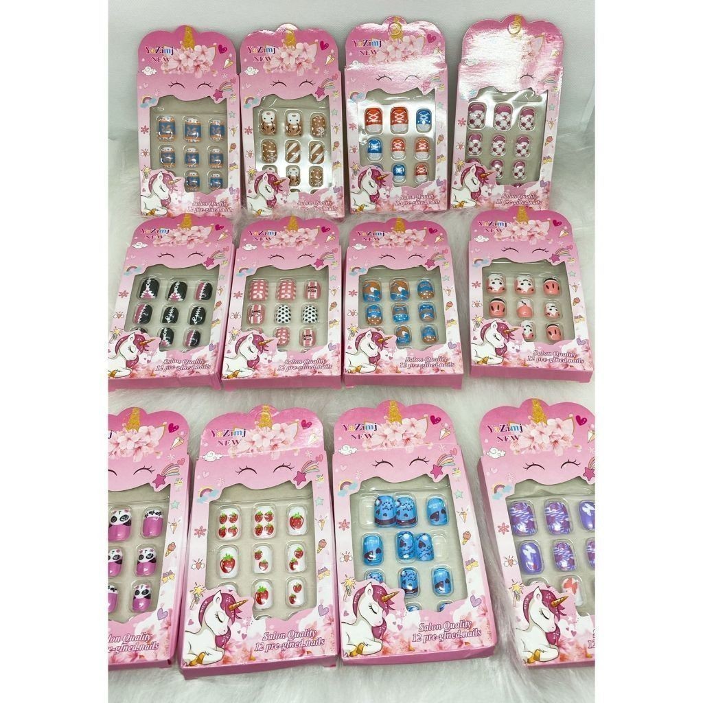 Kit 144 Unhas Postiça Infantil 12 Caixas (1caixa com 12 unhas)Contém Comprimidos de cola sólida