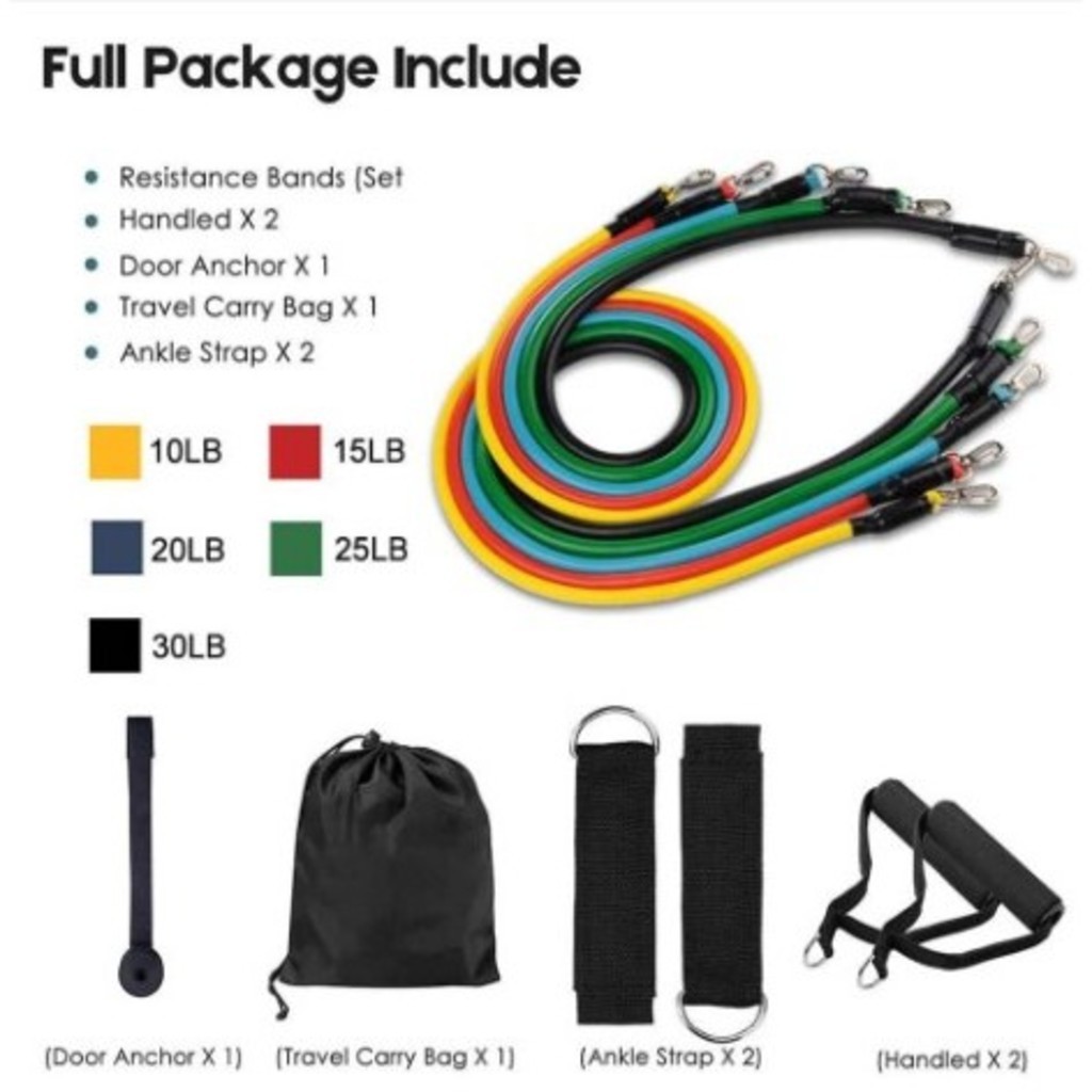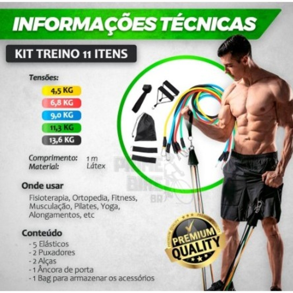 Kit 11 Peças Elástico Para Exercício De Resistência Academia Em Casa Top
