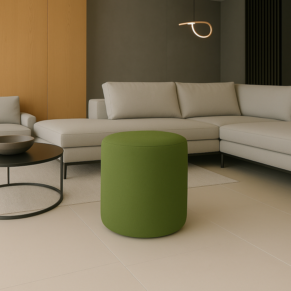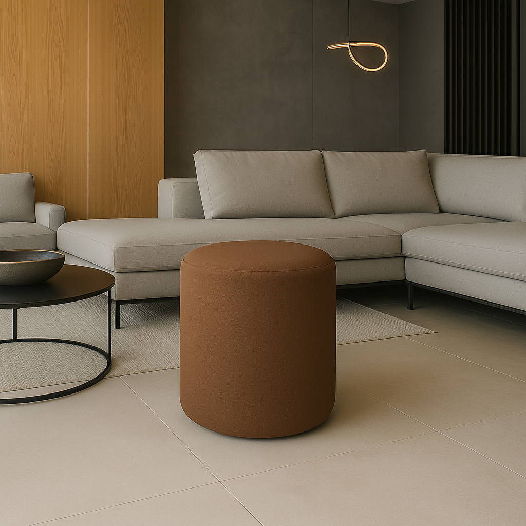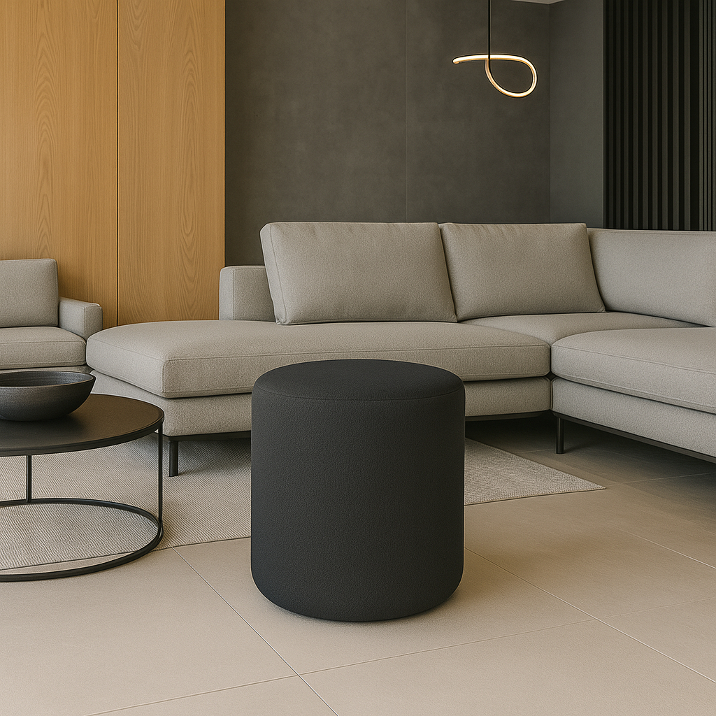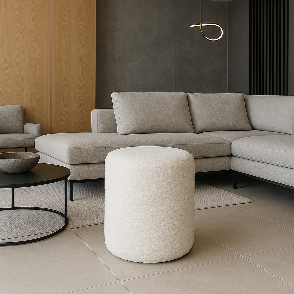 Puff Decorativo Redondo Orgânico Mono no tecido Boucle