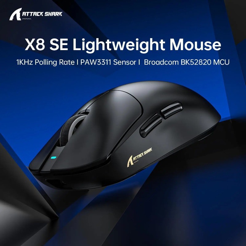 Mouse Para Jogos Sem Fio Superleve ATTACK SHARK X8 SE-55g Ultraleve BK52820 PAW3311 Tri-Mode 25000DPI