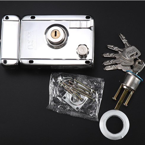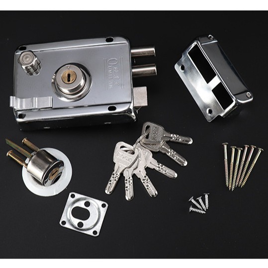 Fechadura Sobrepor cor Cromada Tetra para Portão e Porta Com Trava Dupla e 05 Copia De Chaves Tetra