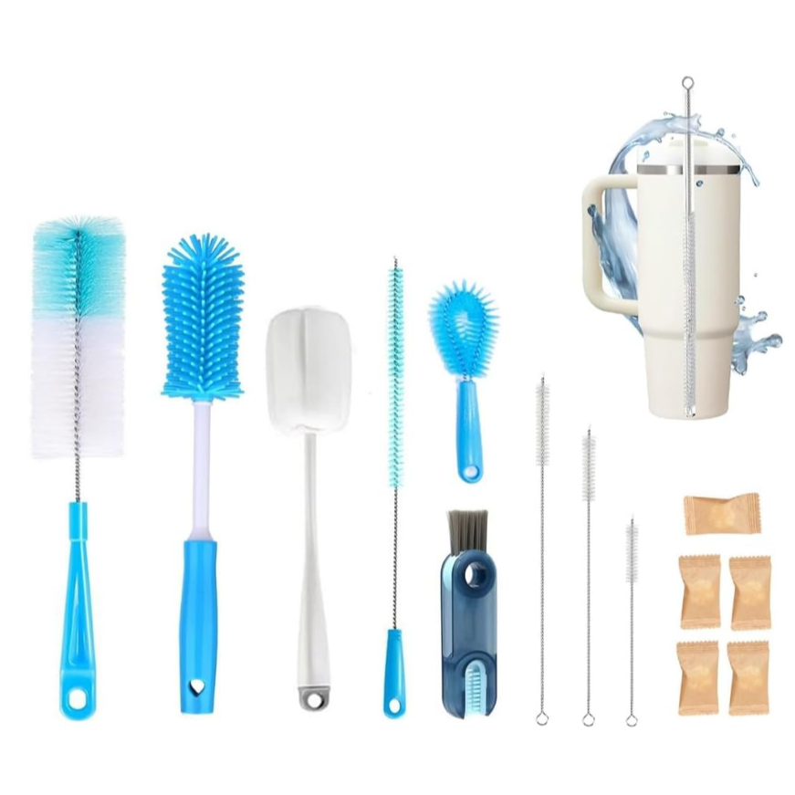 Conjunto De 9 Escovas De Limpeza Multiuso Com Cabo Longo, Escova De Canudo, Escova De Limpeza De Copos