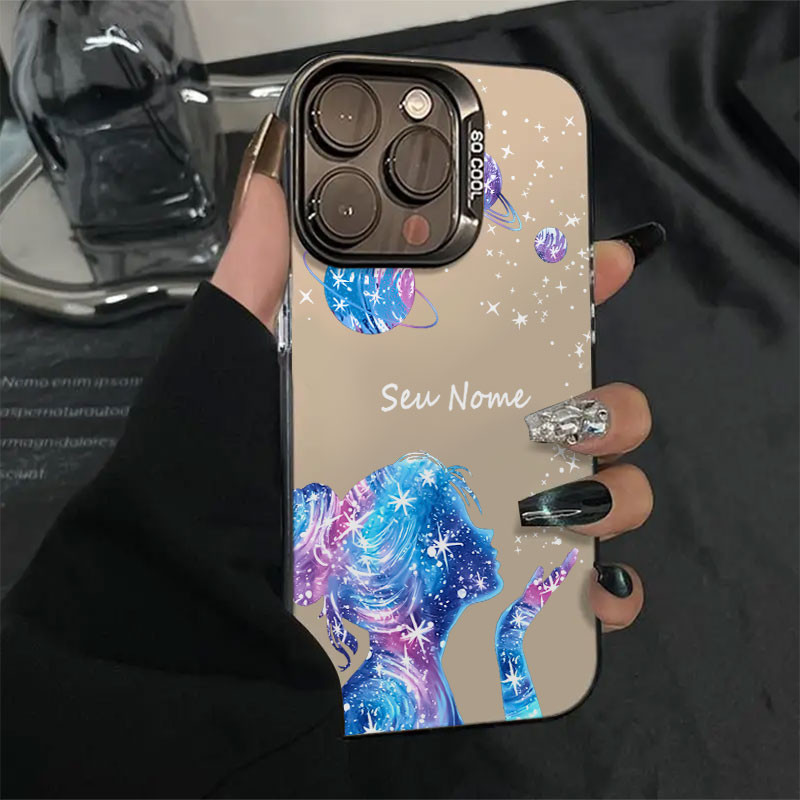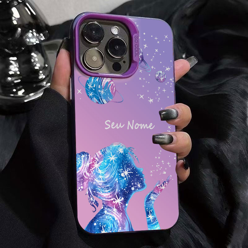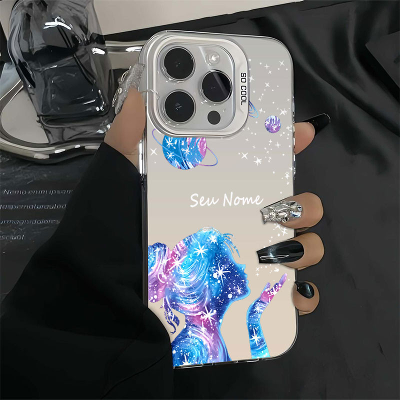 Capinha personalizada feminina glitter fofo para iPhone 11 normal 12 13 xr xsmax 14 15 16 pro max 8Plus 14 16plus 12 pro