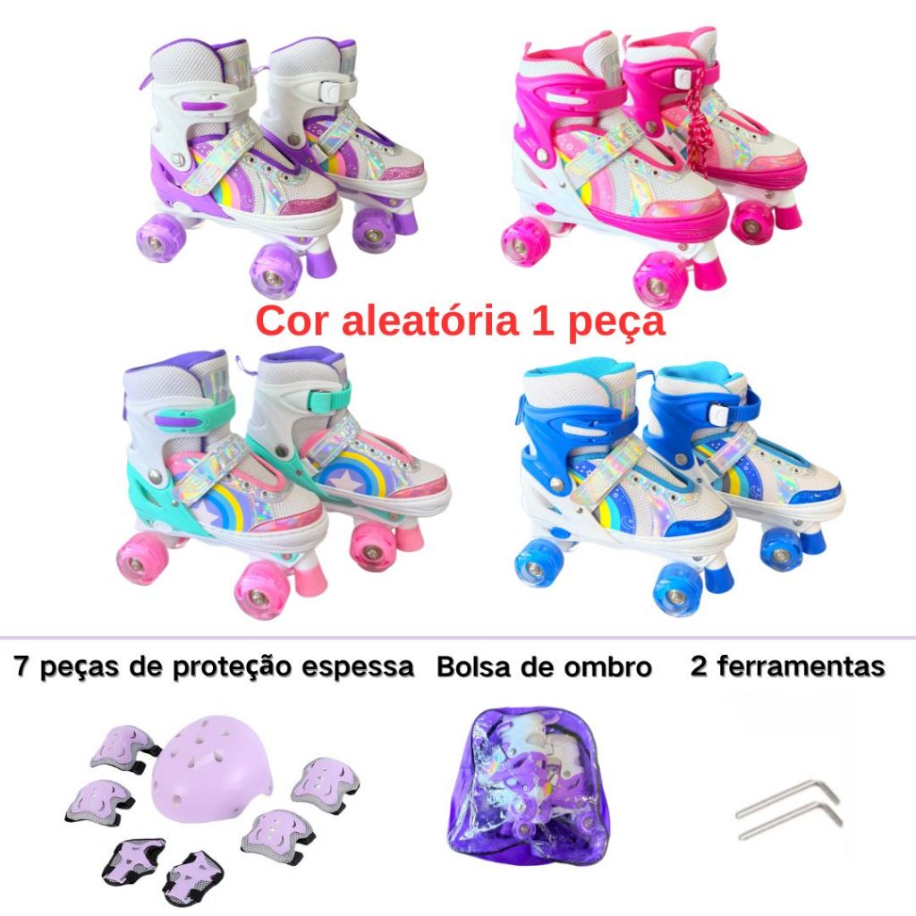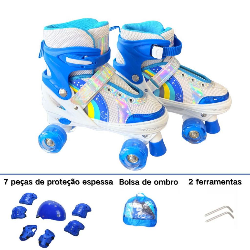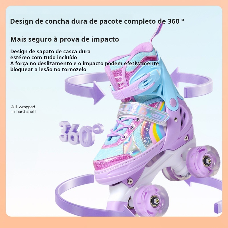 Patins Infantis 4 Rodas LED- Ajustáveis, Iniciantes com Proteção Anti-choque Presentes para crianças