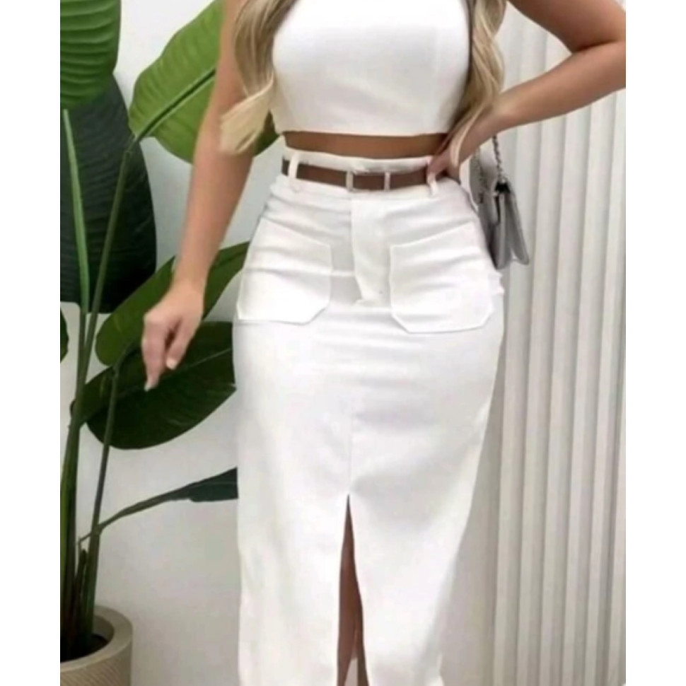 Saia Midi Alfaiataria Com Bolso Frontal Moda evangélica Estilosa festa