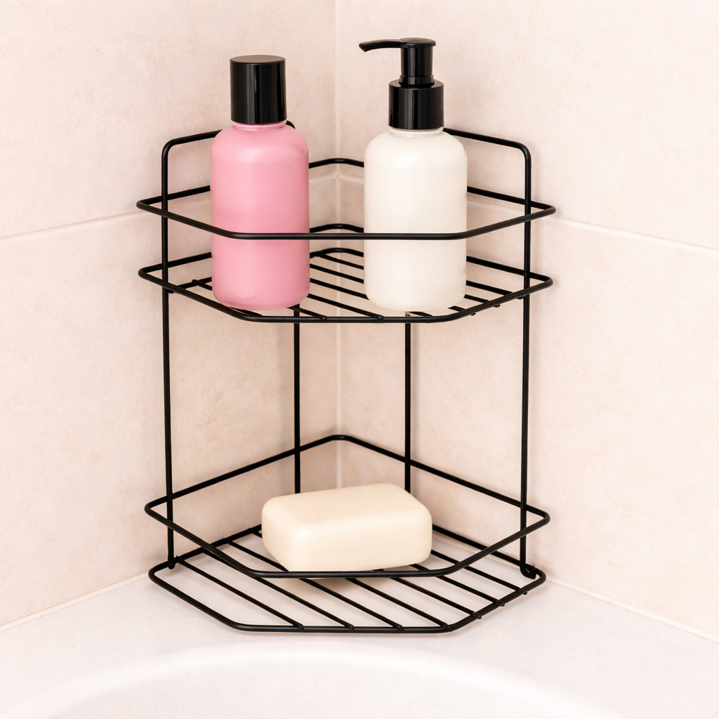 Cantoneira Dupla em Alumínio para Banheiro Box - Organizador Shampoo, Sabonete e Itens de Higiene.
