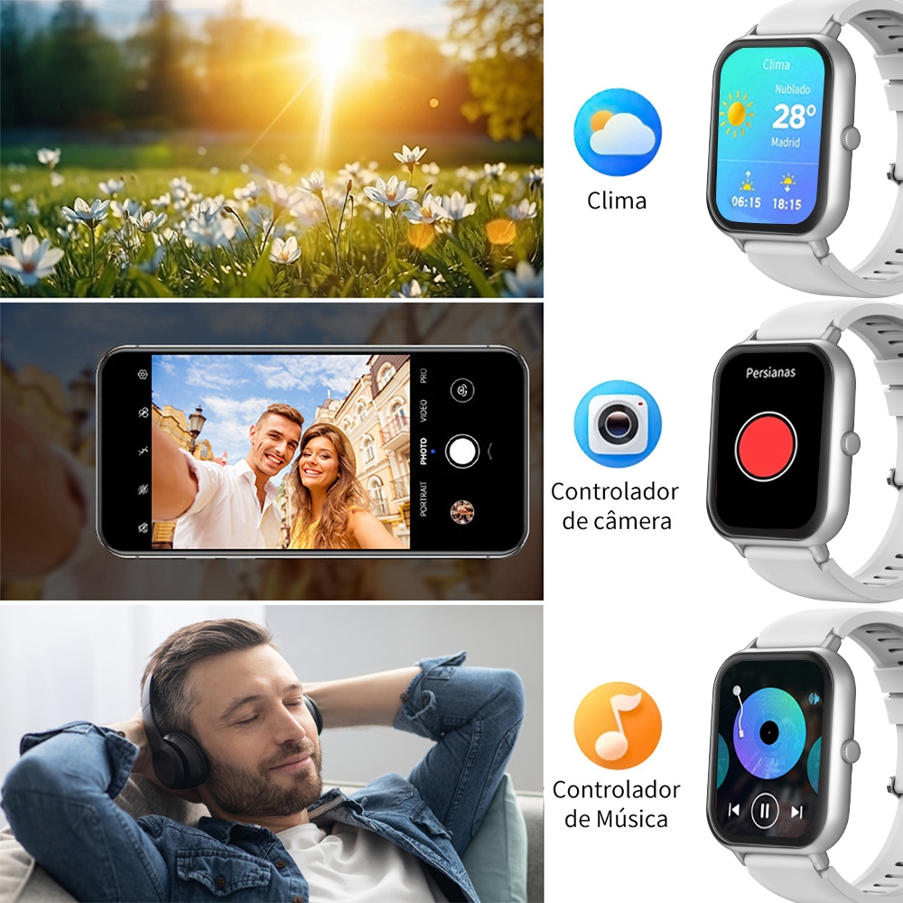OLEVS Relógio Inteligente Masculino à Prova d'Água com Pulseira Cinza– Produto Original Importado Ultra 8203
