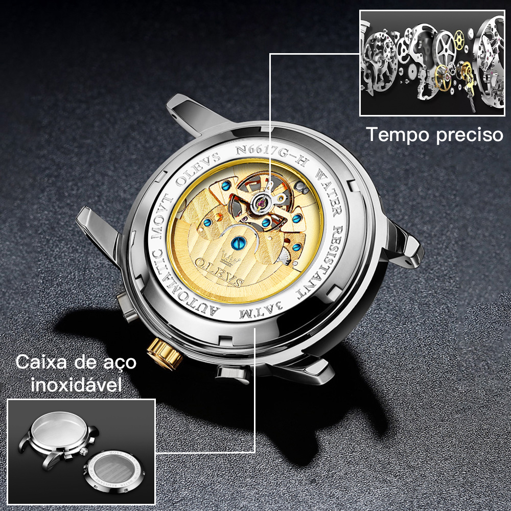 Olevs Relógio Masculino Relogio à Prova D'Água Design Oco Caixa Com Turbilhão OcoAutomatico Original Classico Luxo 6617