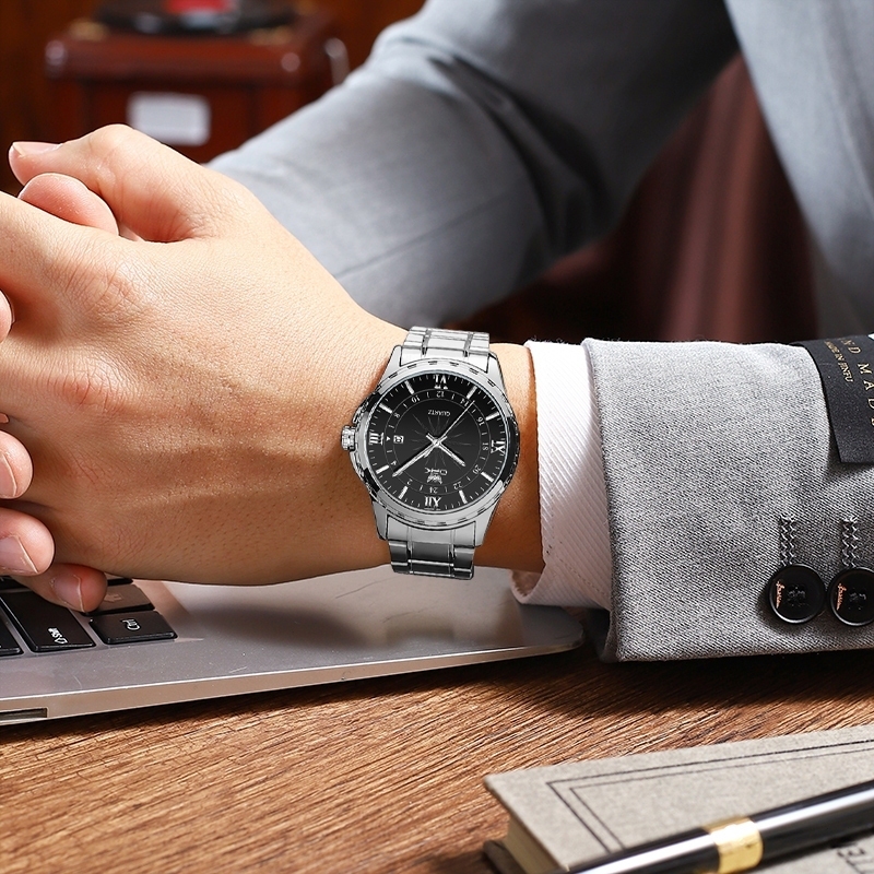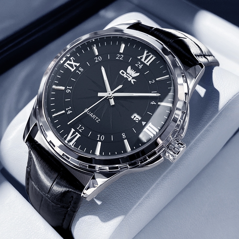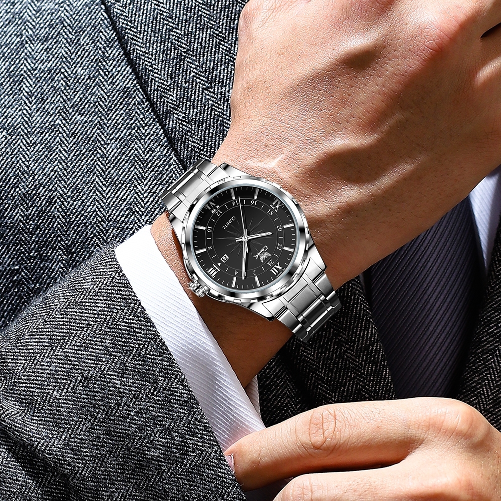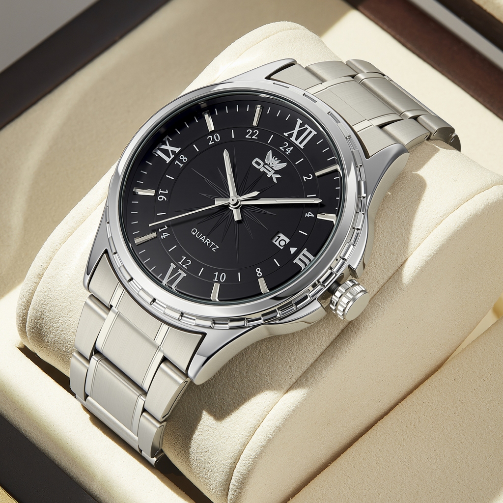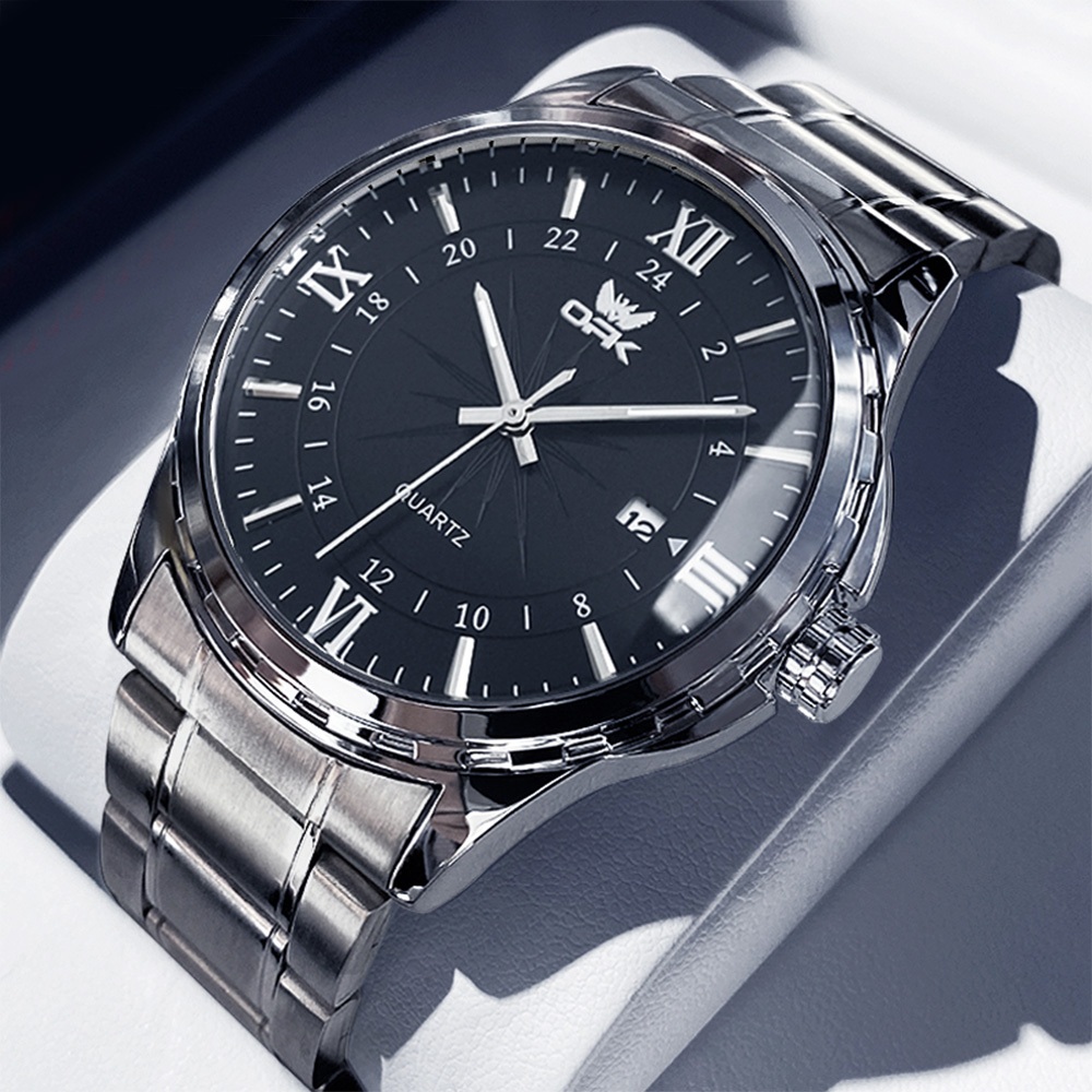 OPK Relógios Masculino Relogio À prova de água Original Esportivo Preto Prata De Aço Inoxidável 6003