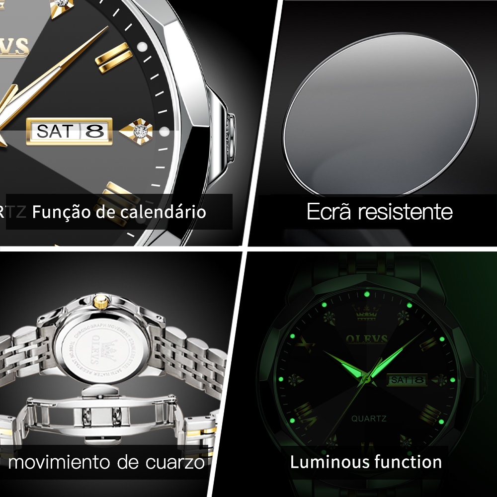 OLEVS Relógio Original À Prova D'água Analógico De Quartzo De Aço Inoxidável Multifuncional Masculino Luminoso 9931