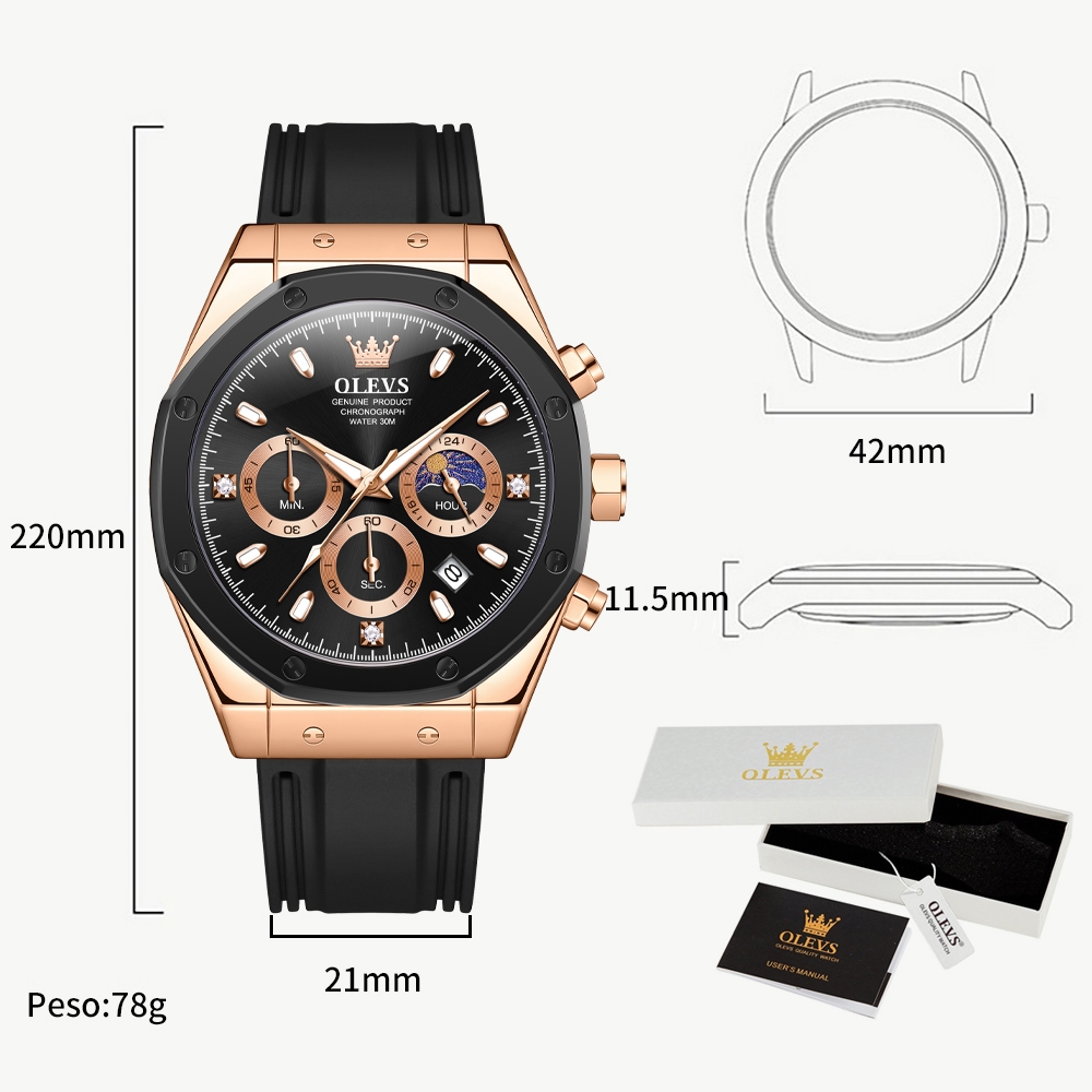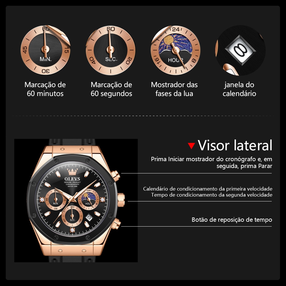 OLEVS Relógio Masculino Relogio A Prova D água Luxo Orient Original Multifuncional Luminoso 9911