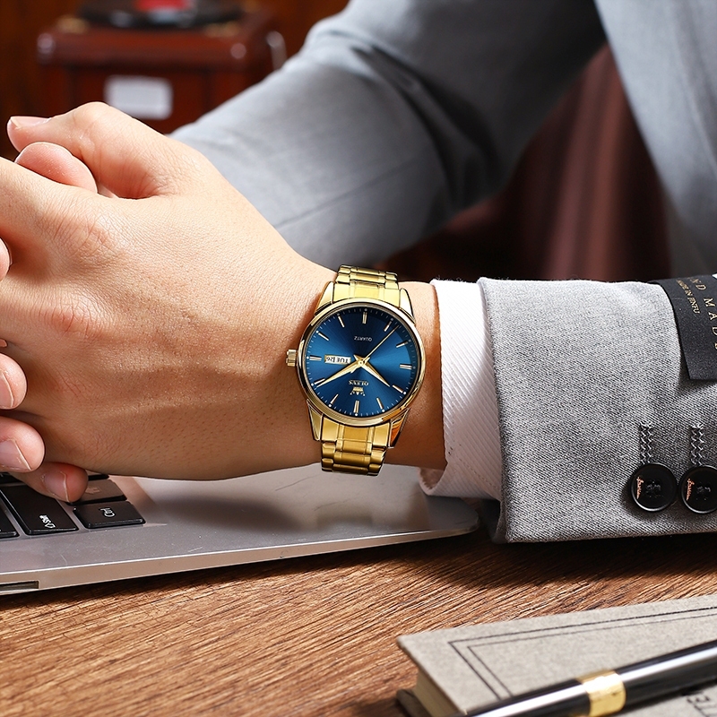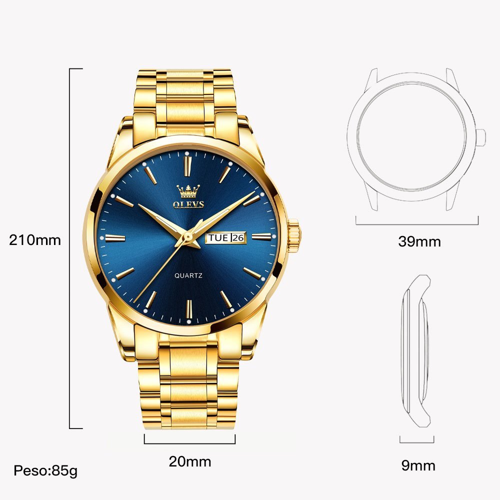 OLEVS Relógio Masculino Relogio A Prova D'água Luminoso Calendário Luxo Dourado & Azul & Preto 6898