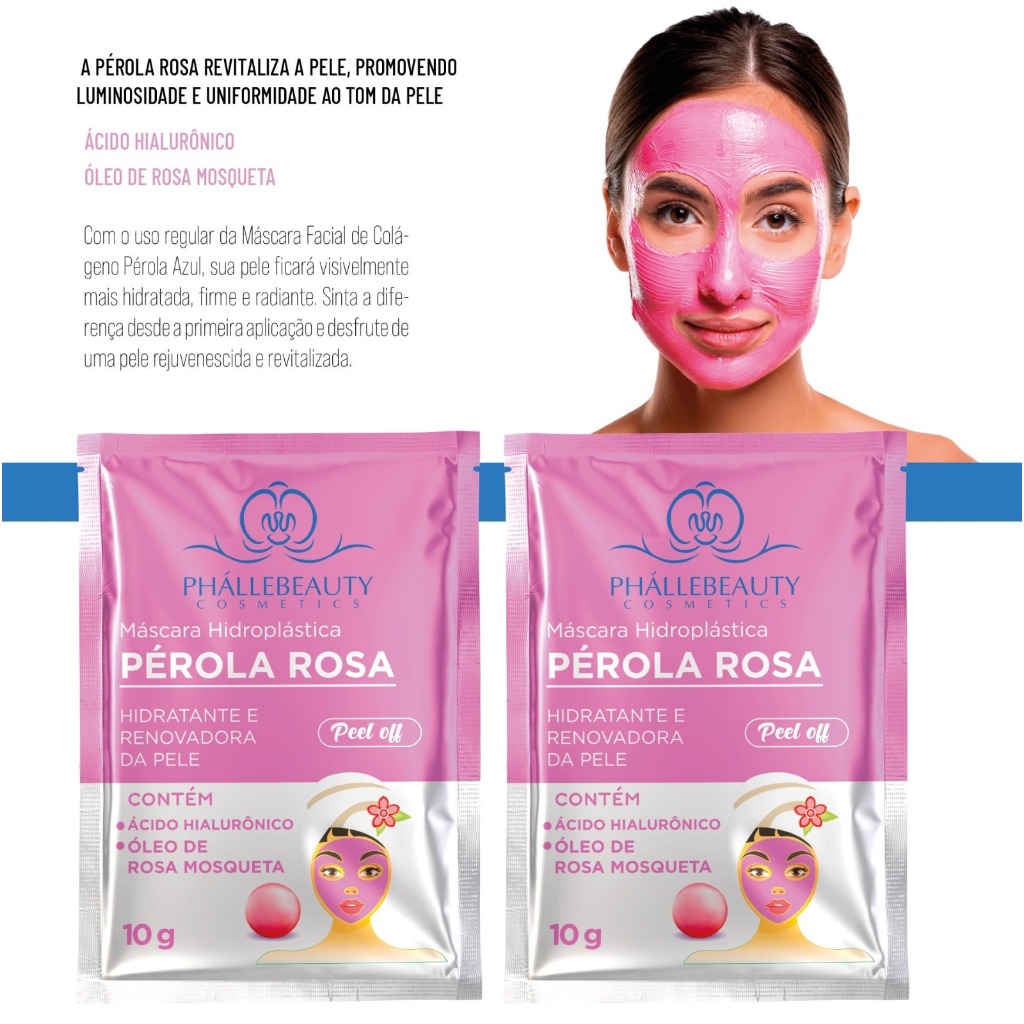 Kit Máscara Hidroplástica Peel Off Pérola Rosa Sachê 10g - Phallebeauty