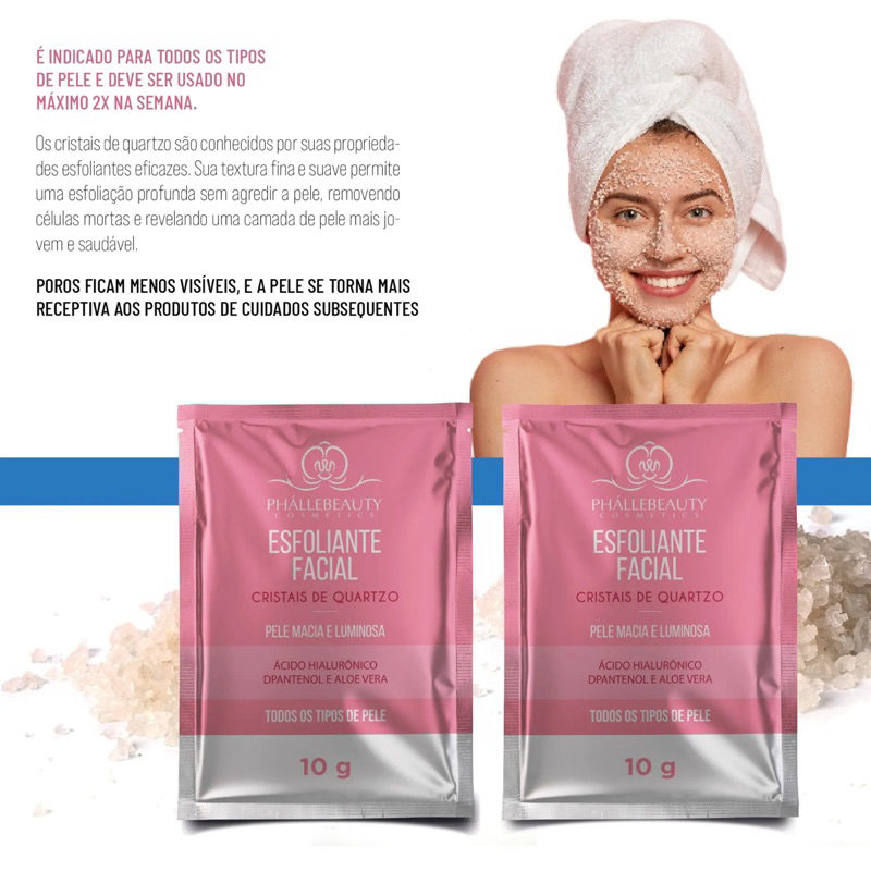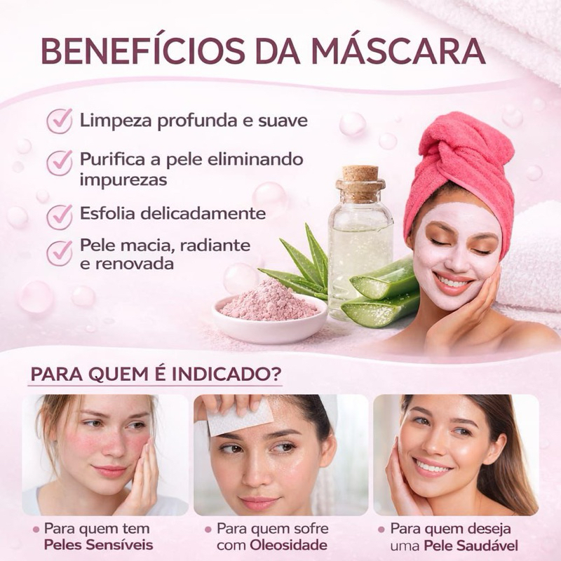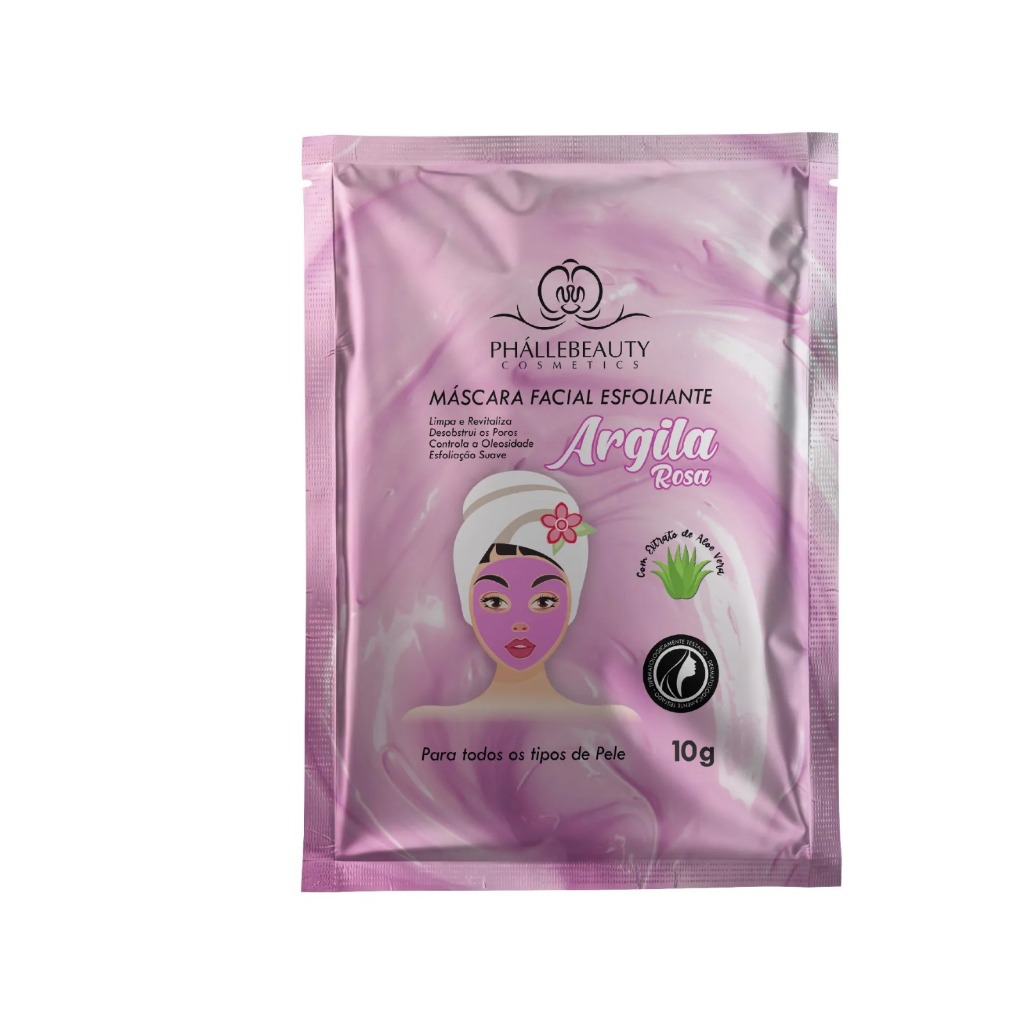 kit com 10 Máscara Facial Argila Rosa e Acido hialurônico Sachê 10g - Phállebeauty