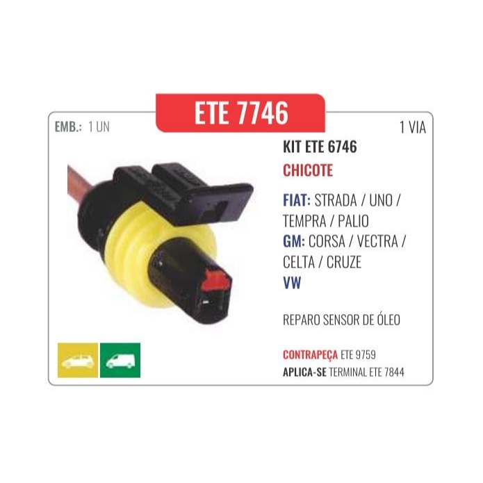 Chicote Reparo Sensor de Óleo - Uno-Tempra-Palio-Corsa-Vectra-Celta Cebolinha Óleo - ETE 7746
