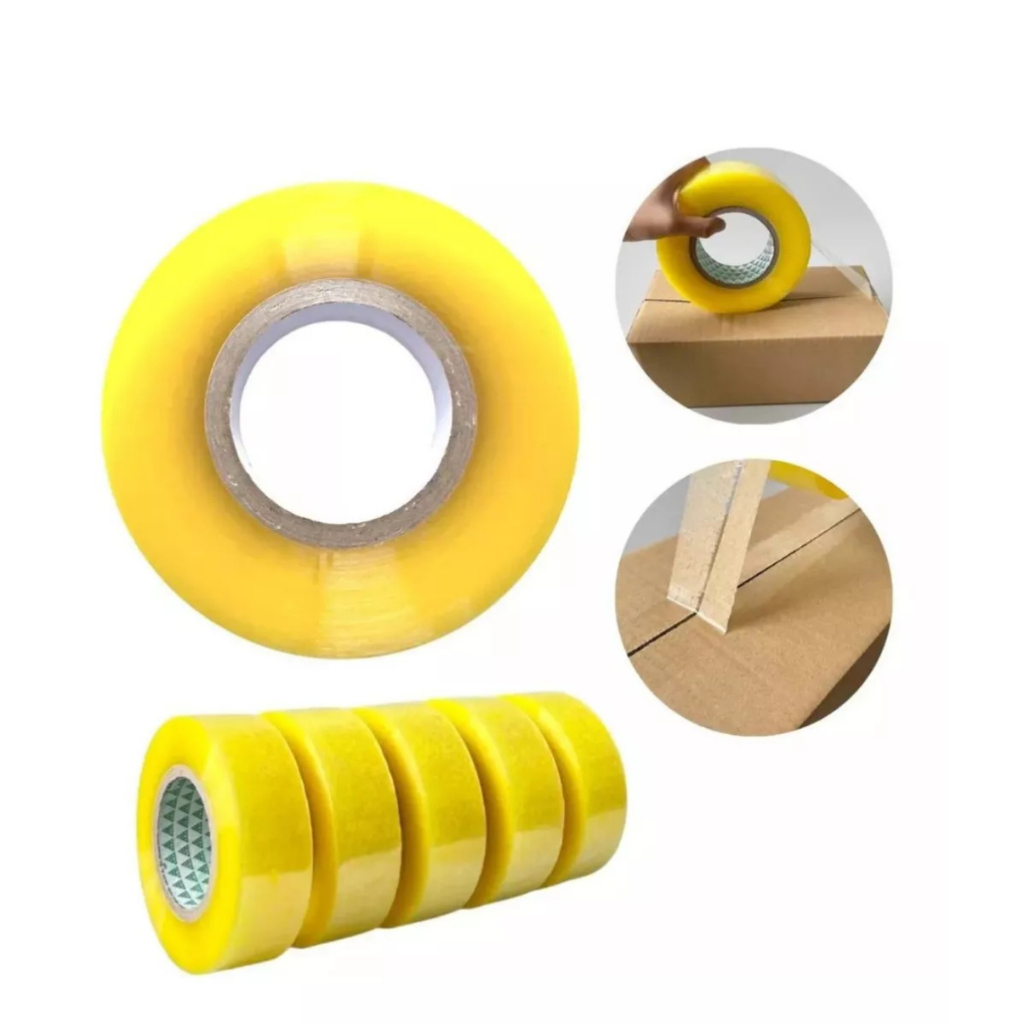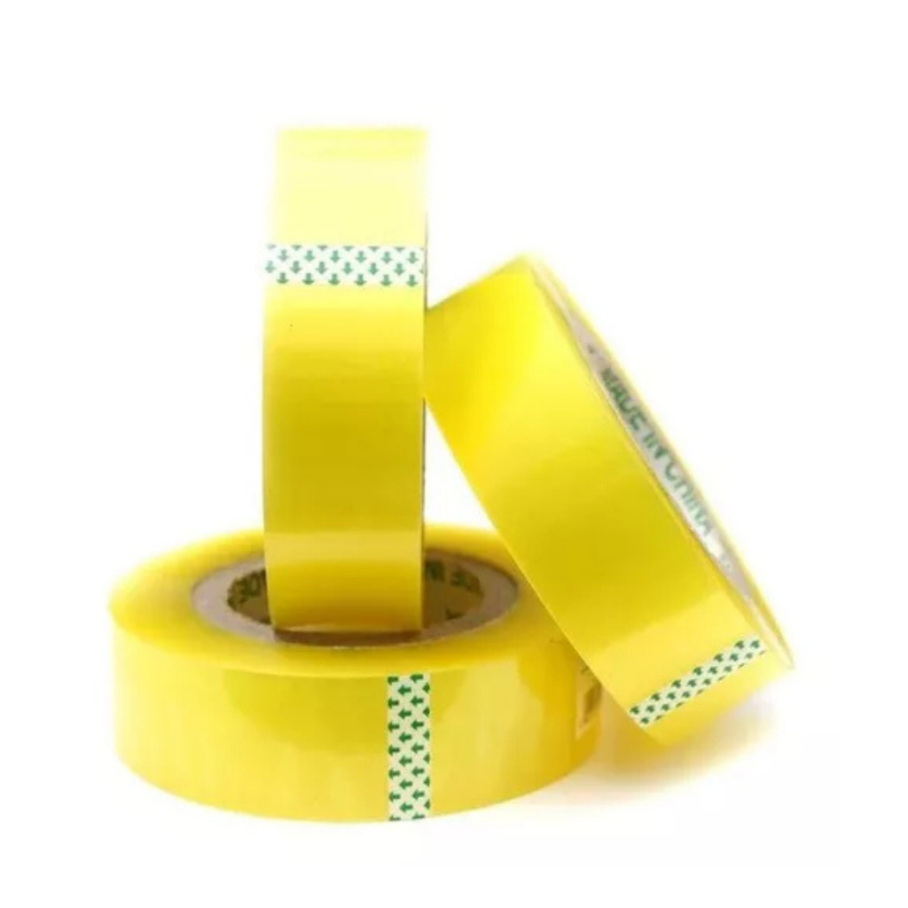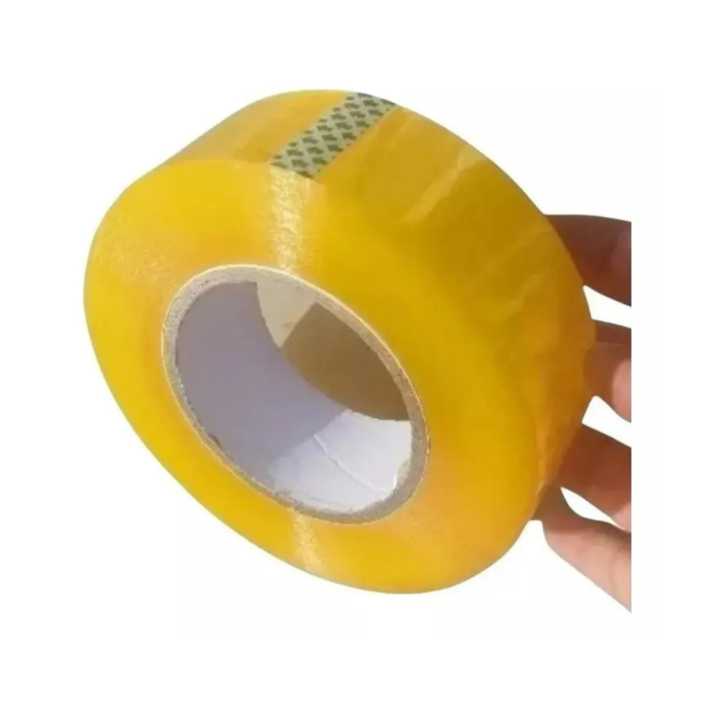 Kit 3 Fita Larga Transparente 300m Adesiva Forte Durex Super Cola Resistente Amarela espessura 4,2cm