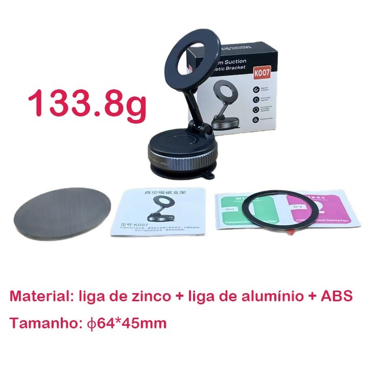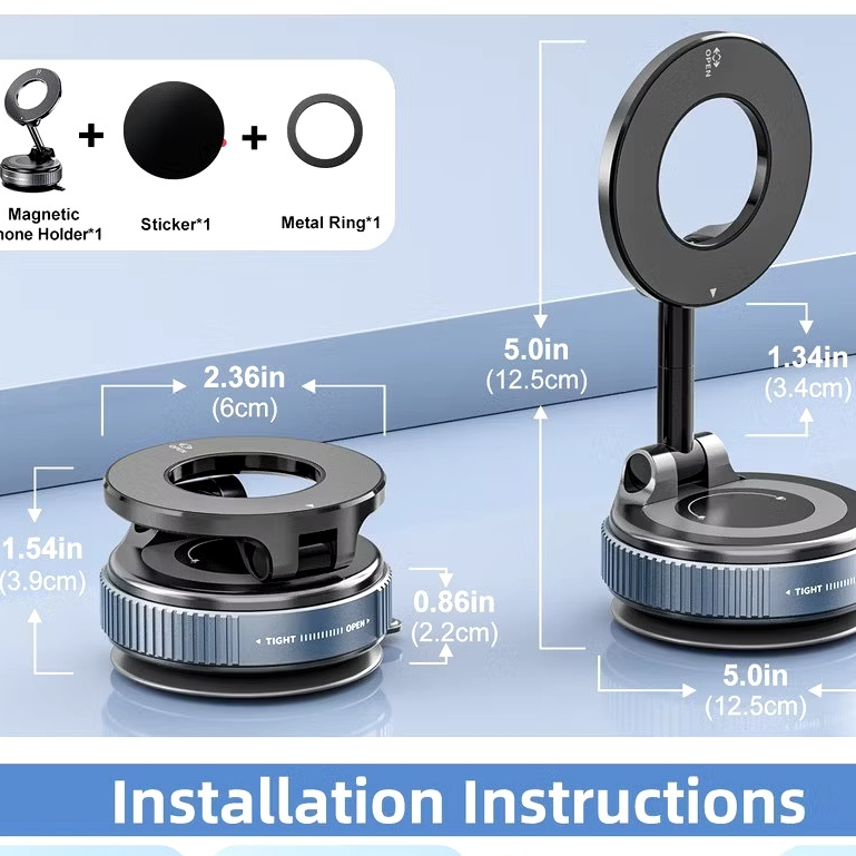 360°Suporte dobrável para celular, adsorção a vácuo dupla face, suporte magnético para carro