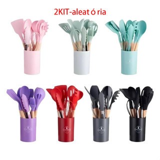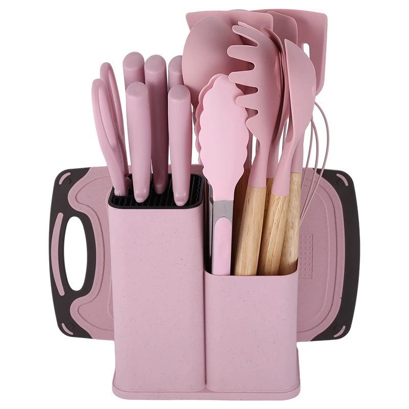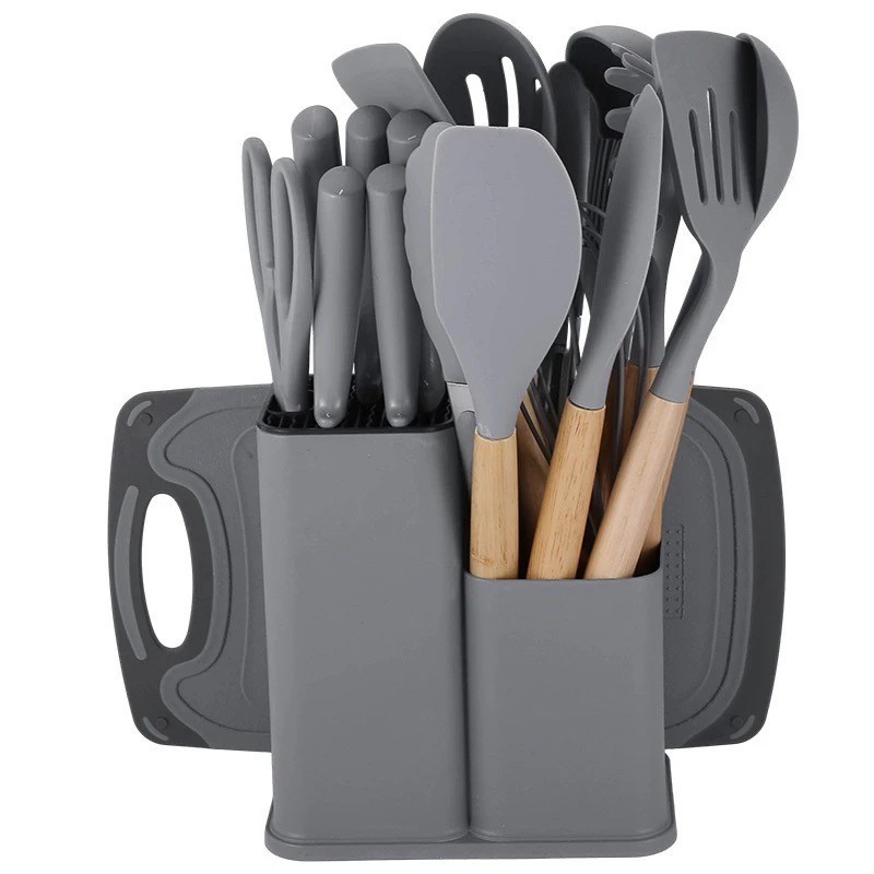 Kit Completo Jogo de Cozinha 5/12/19 Peças Com Tábua em Silicone Espátula Faca Tesoura Utensílios