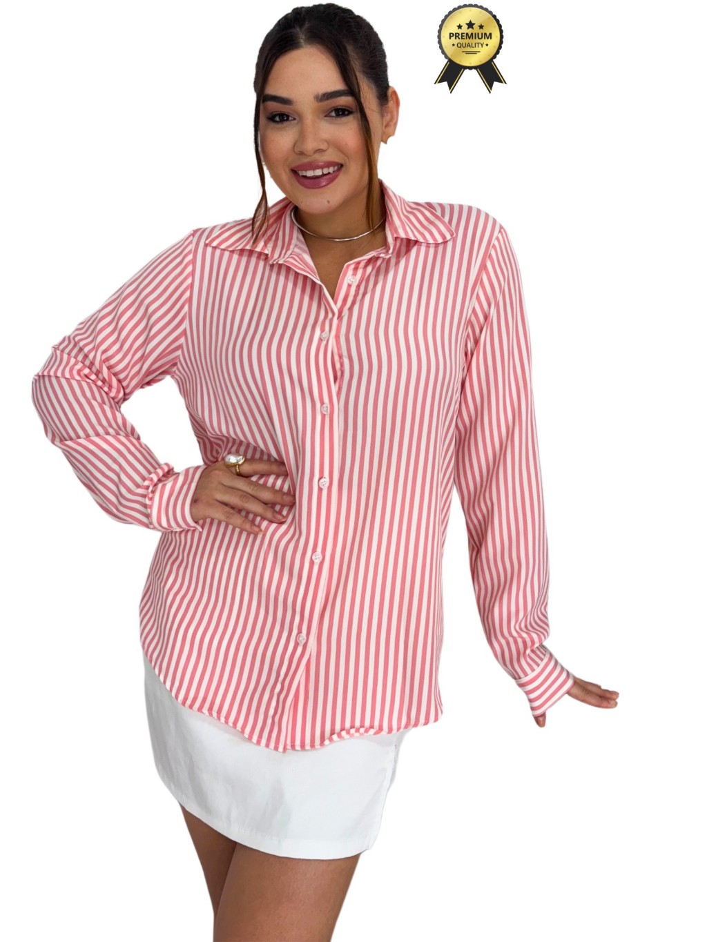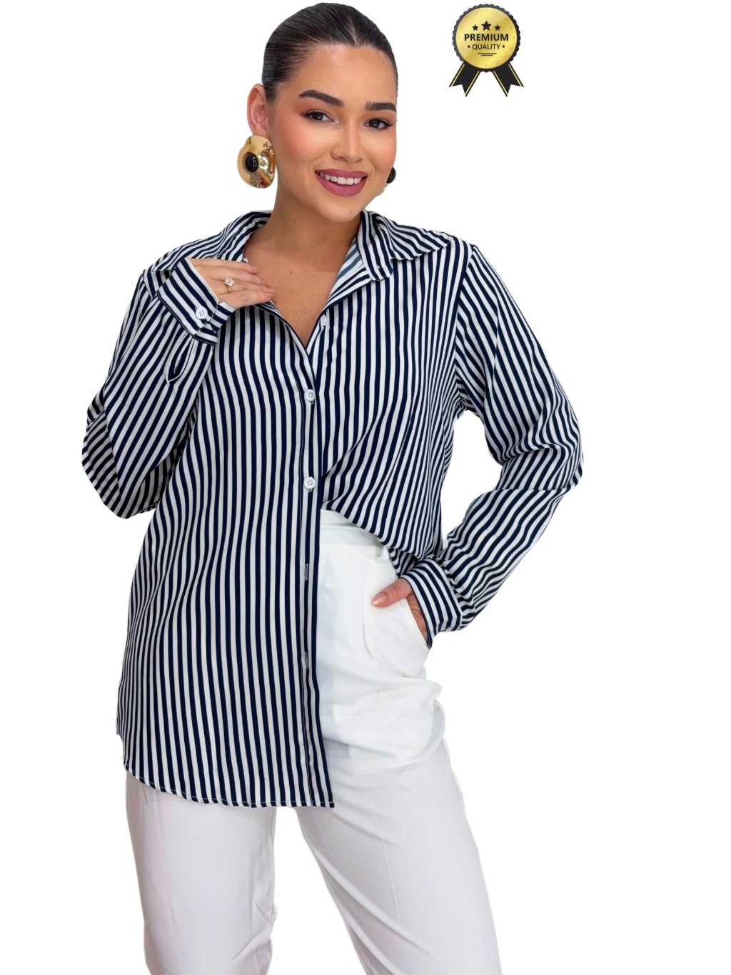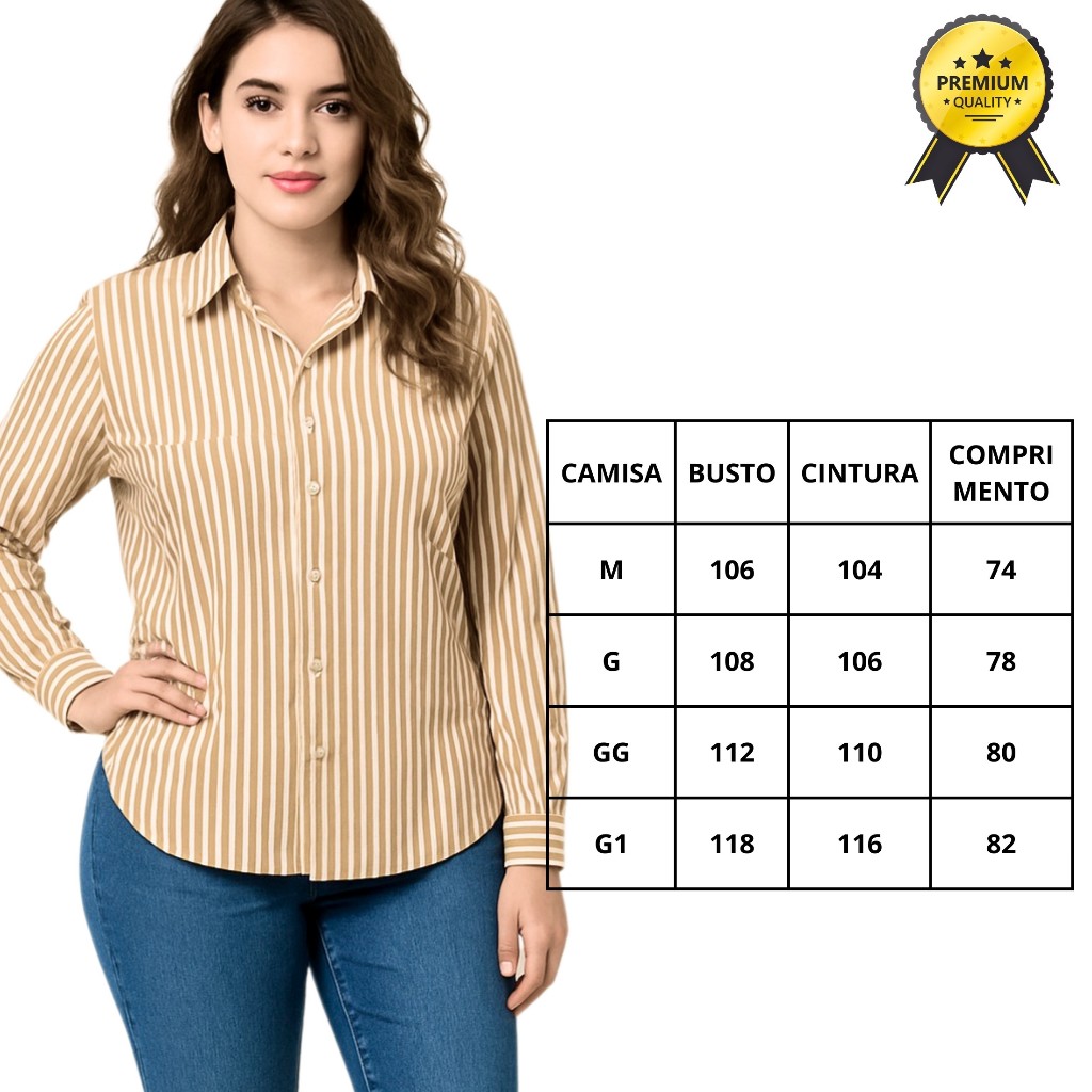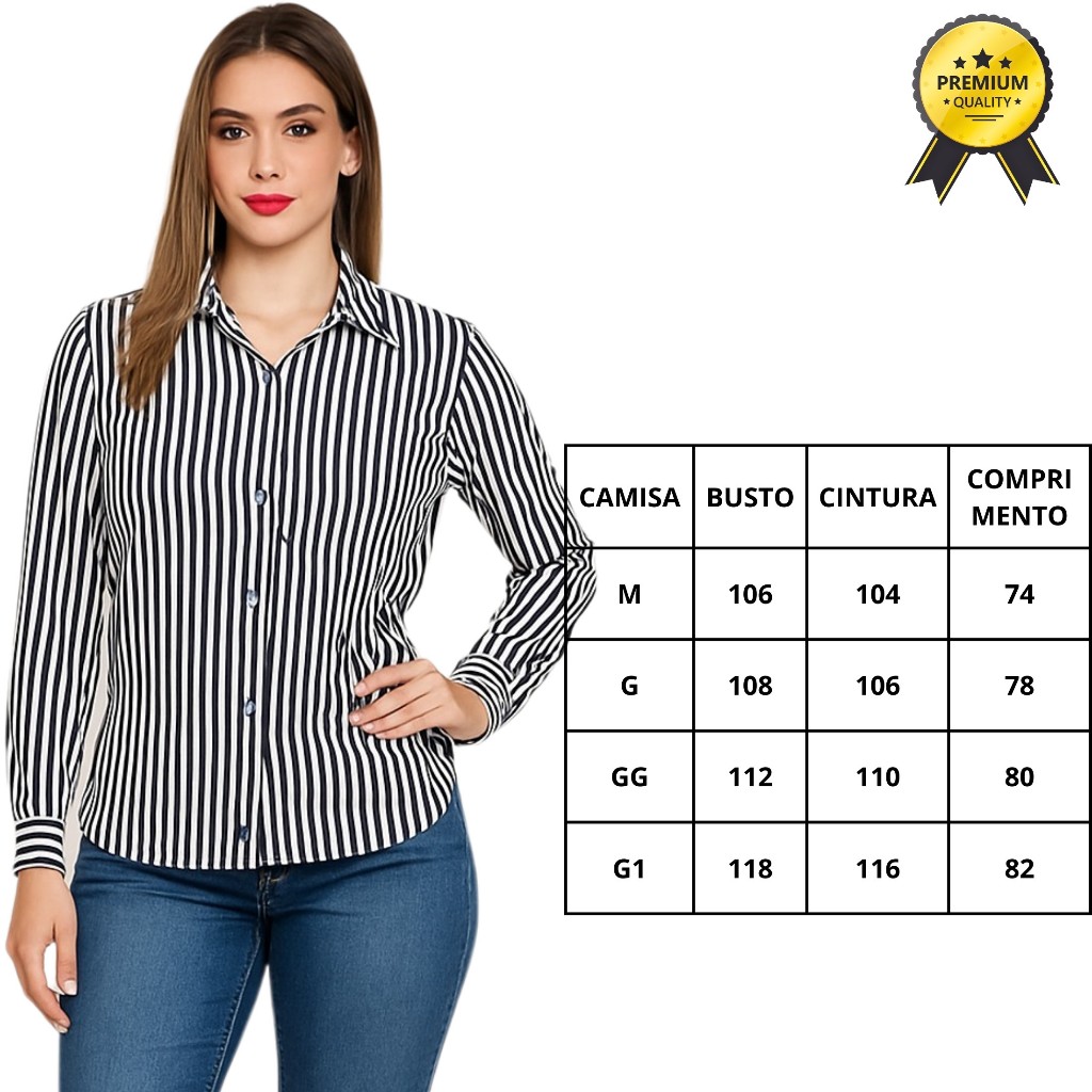 Camisa Feminina Social Clássica Listrada C/ Botões Elegante