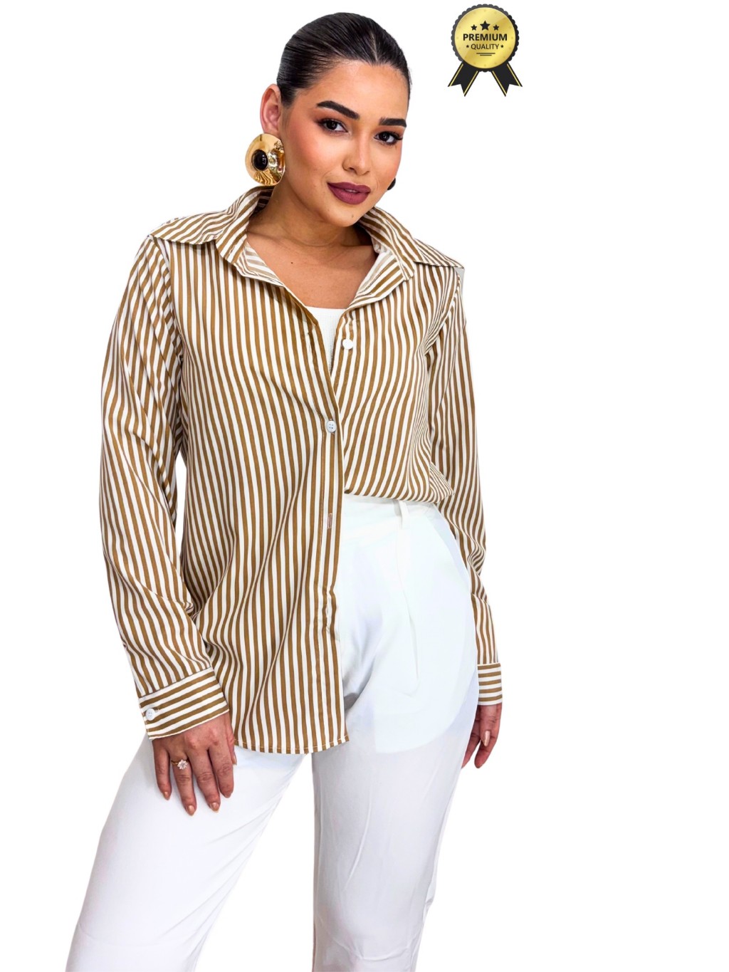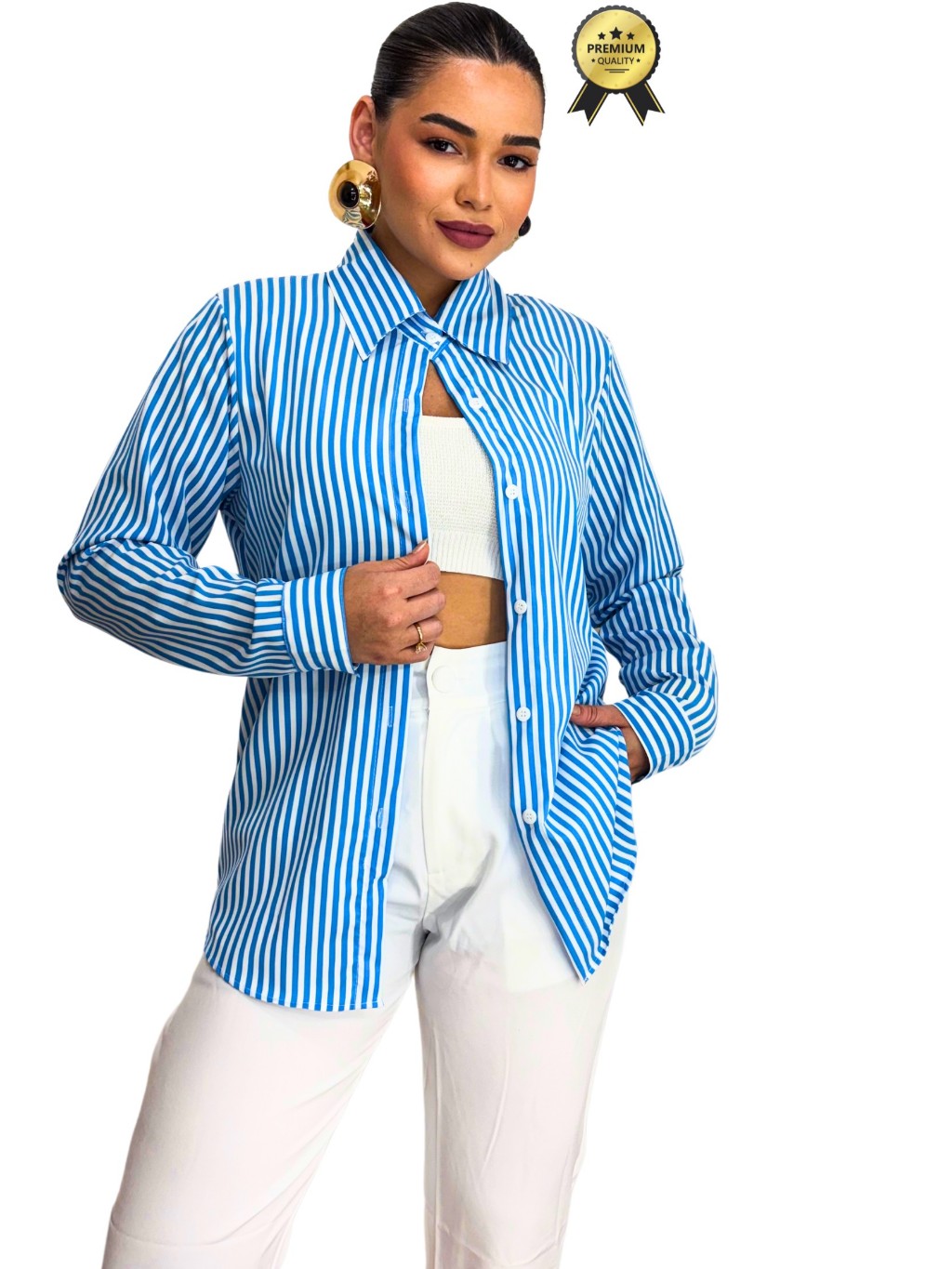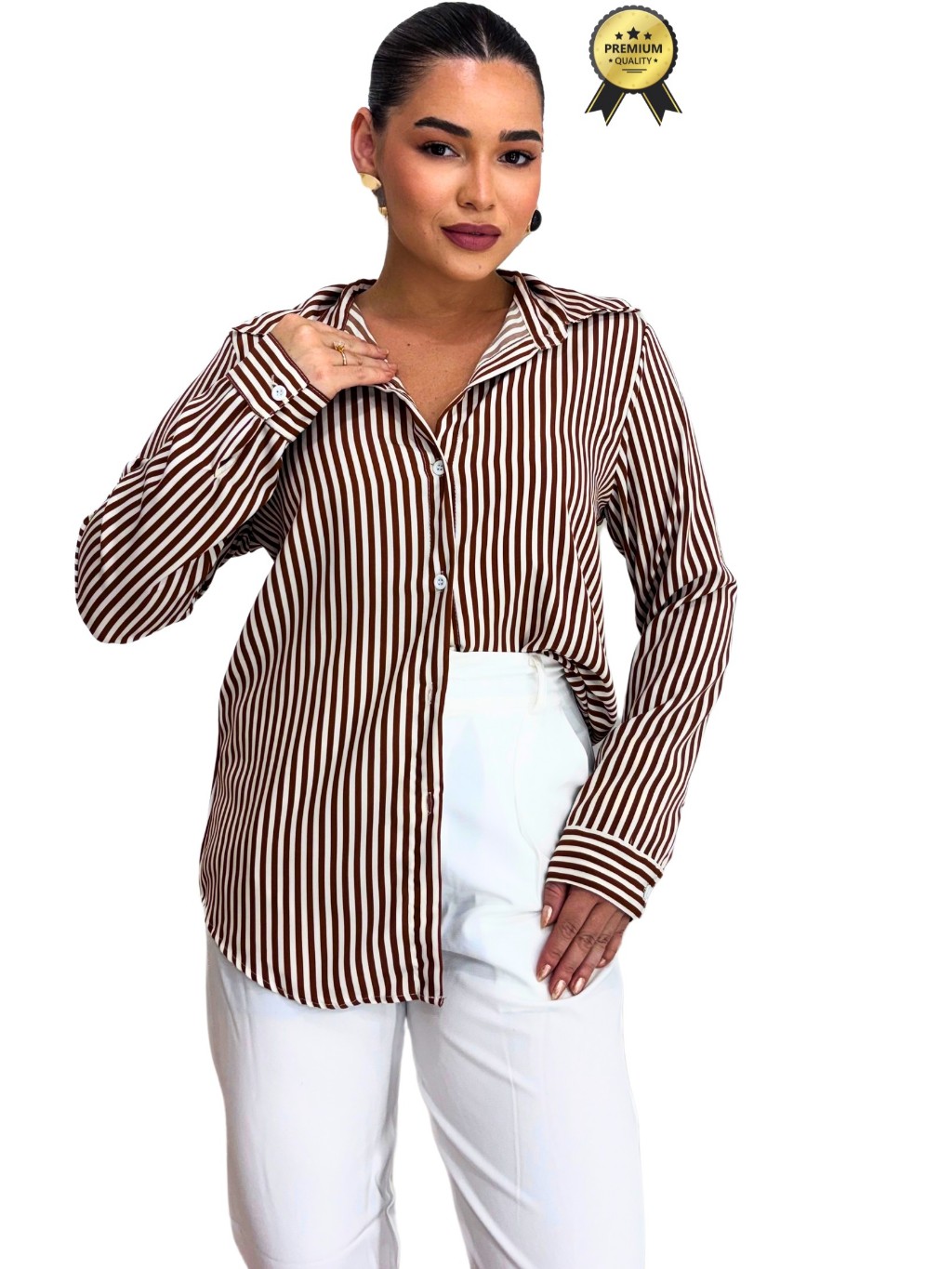 Camisa Feminina Social Clássica Listrada C/ Botões Elegante