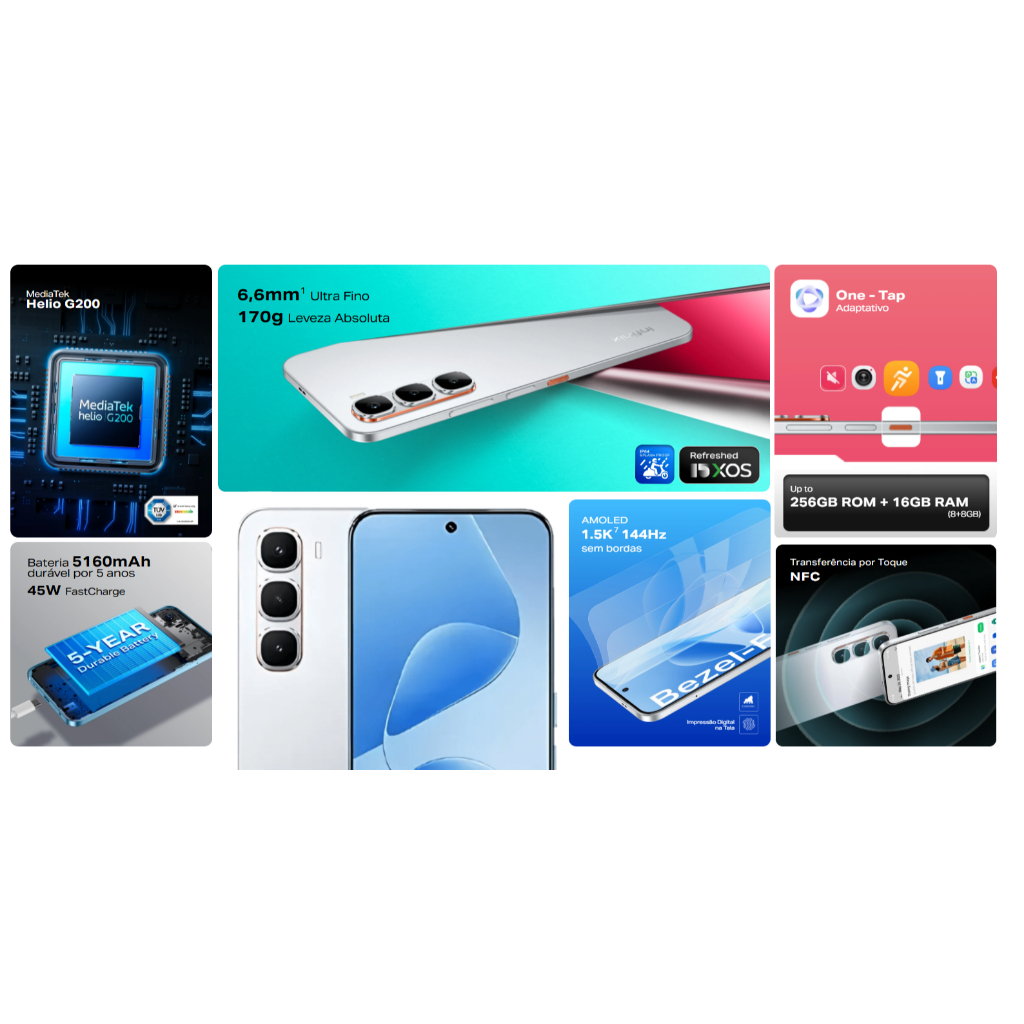 Infinix HOT 60 PRO Ultra-Slim | 4G – AMOLED 1.5K 144Hz | 256GB + 8–16GB RAM | Helio G200 | 5160mAh | NFC | IP64