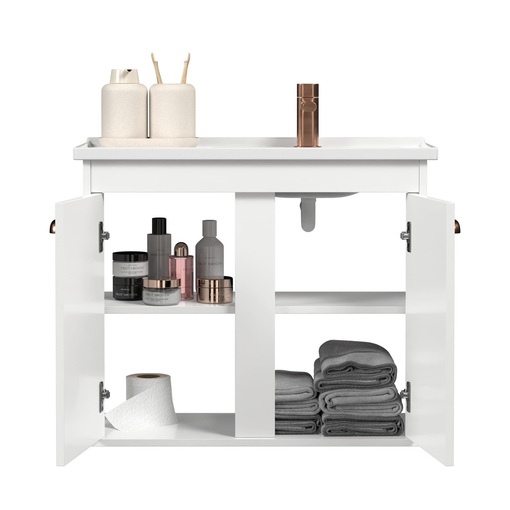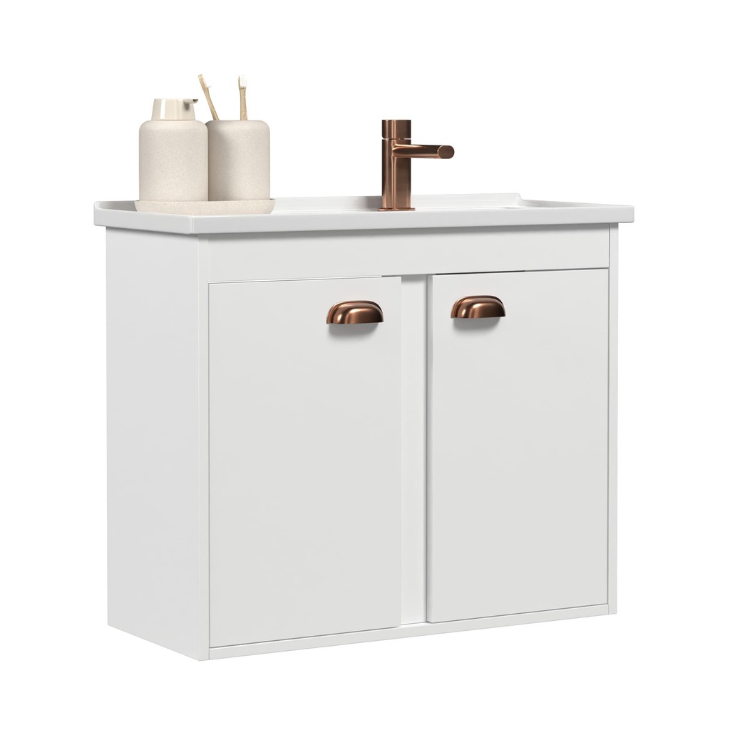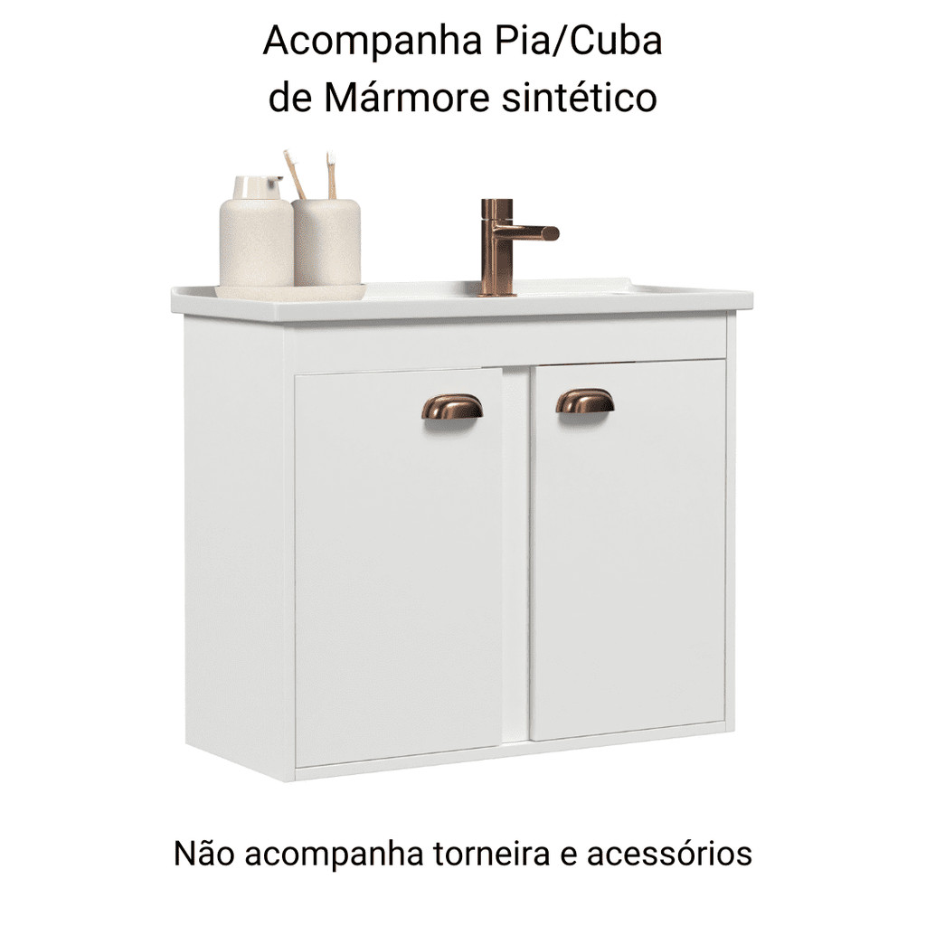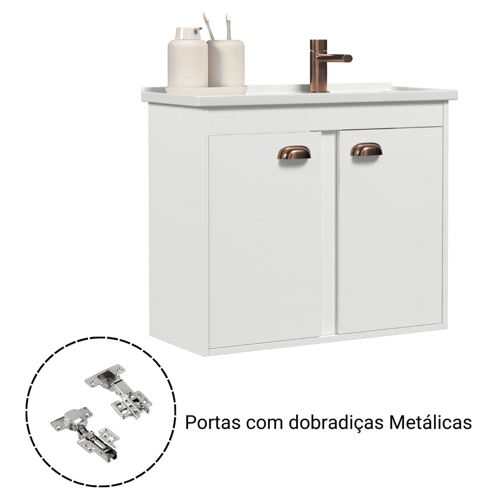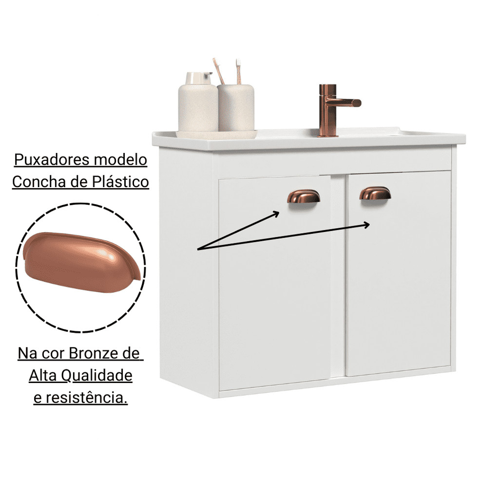 Gabinete para Banheiro New Prisma Suspenso com Pia Prateleira interna Puxadores concha Retro Fhem móveis