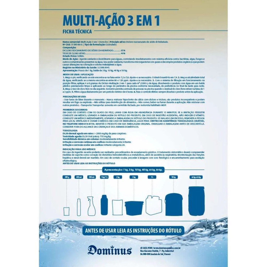 Cloro 3 Kg Multiação 3 em 1 Domclor Limpeza Para Piscina