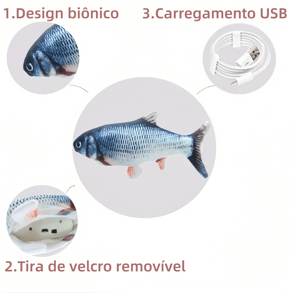 Brinquedo Interativo Peixe Elétrico para Gatos e Pets - Recarregável via USB e Muito Divertido