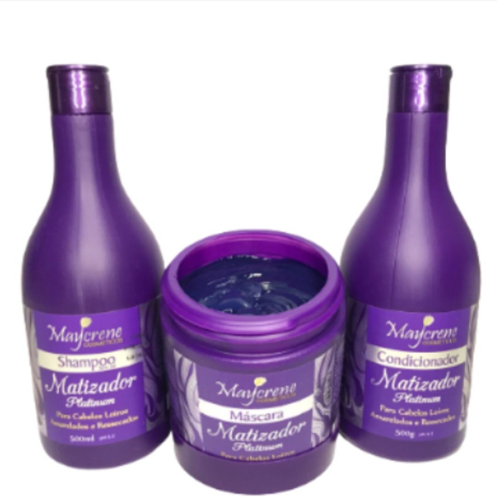 Kit Shamp + Cond + Masc Matizador Platinum Loiro Grisalho Branco Maycrene Pronta Entrega