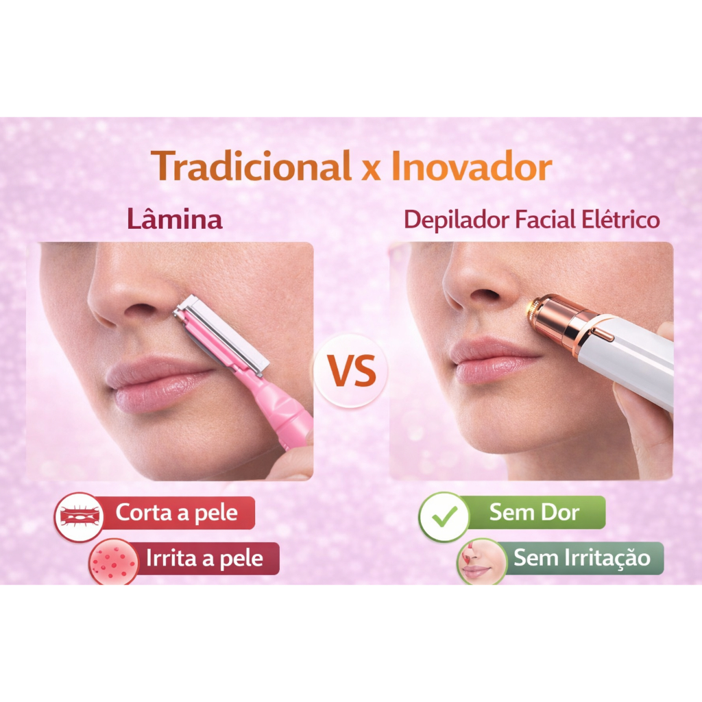 Depilador Facial Elétrico Feminino Removedor de Buço Sem Dor Aparador Portátil + Pilha