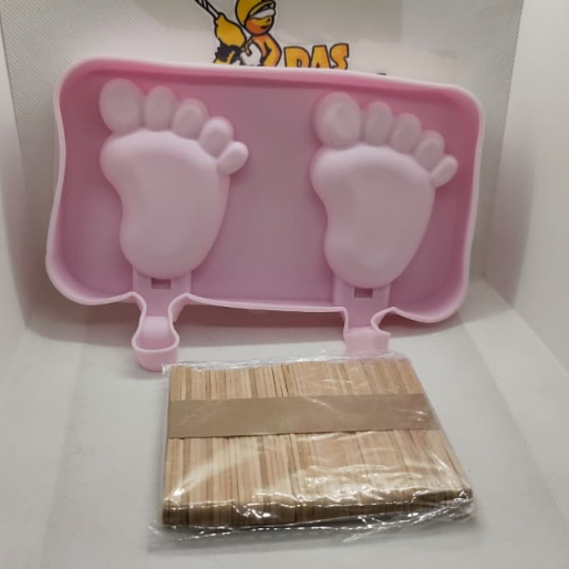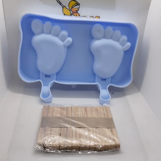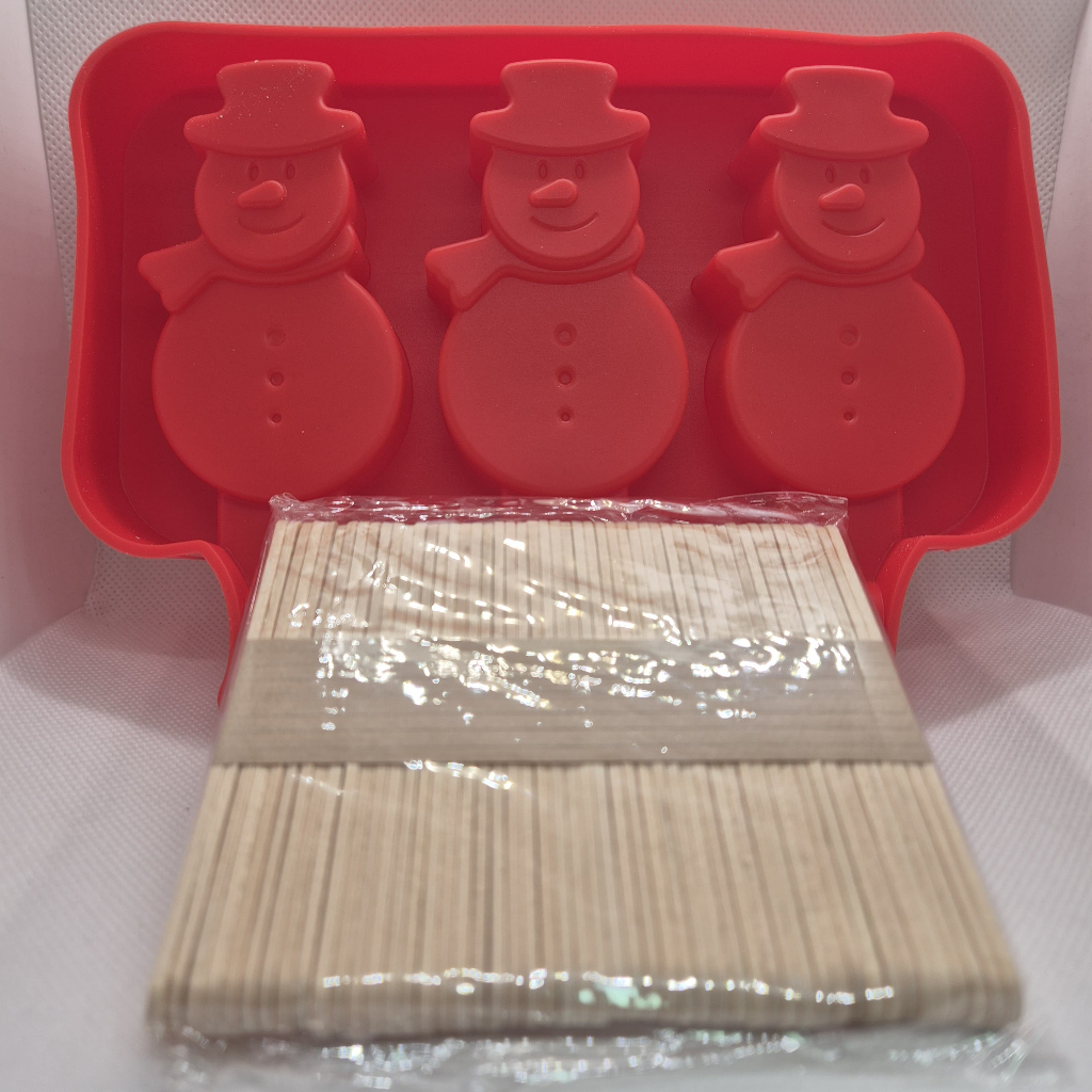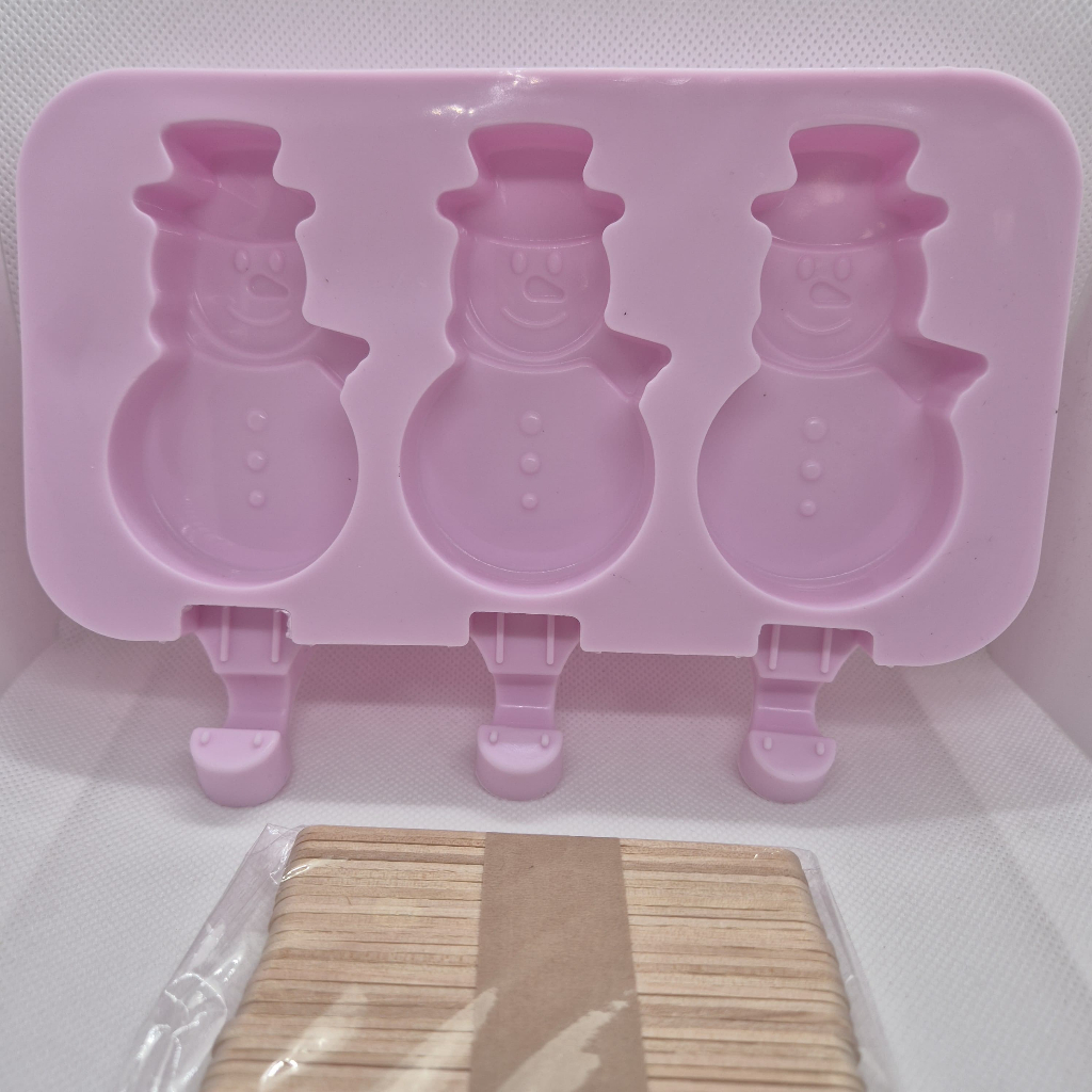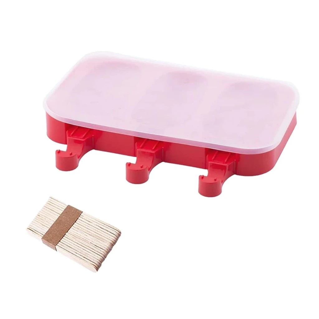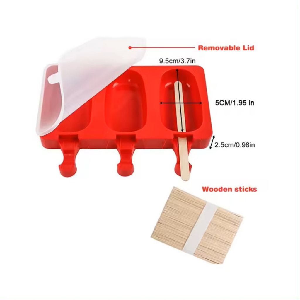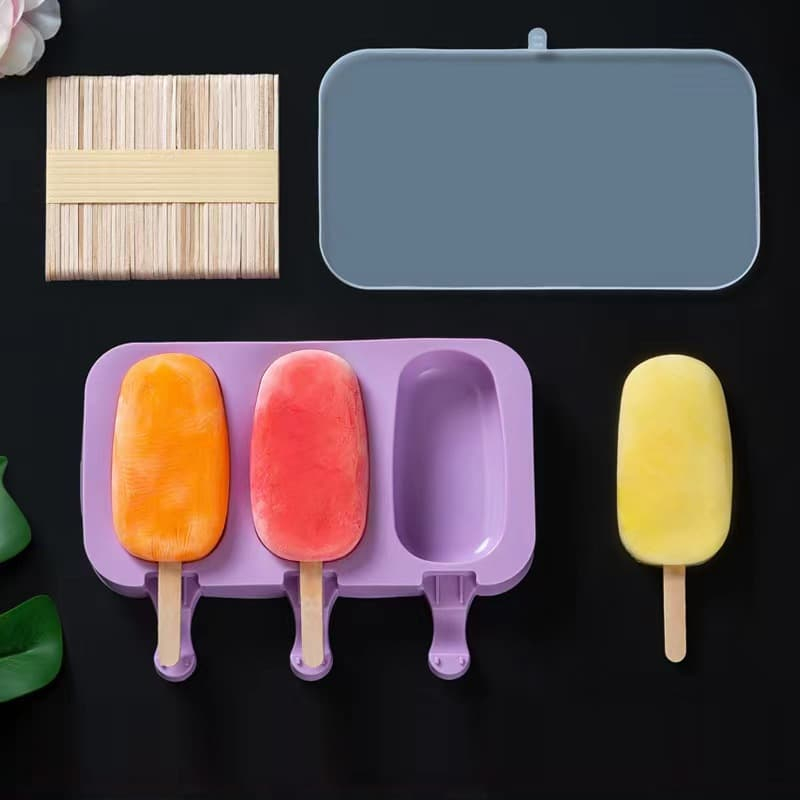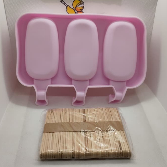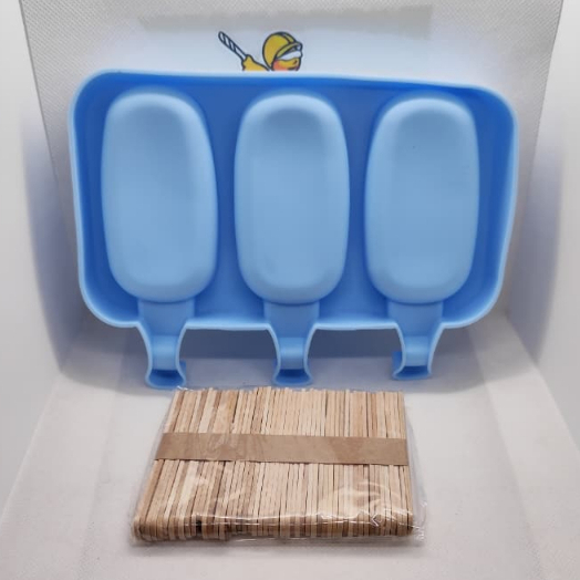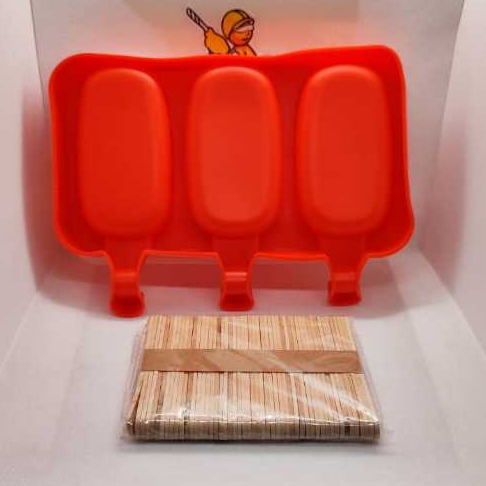 Forma Sorvete Silicone Para Picolé C/ 50 Palitos Com Tampa / Sobremesa 3 Cavidades Geladinho