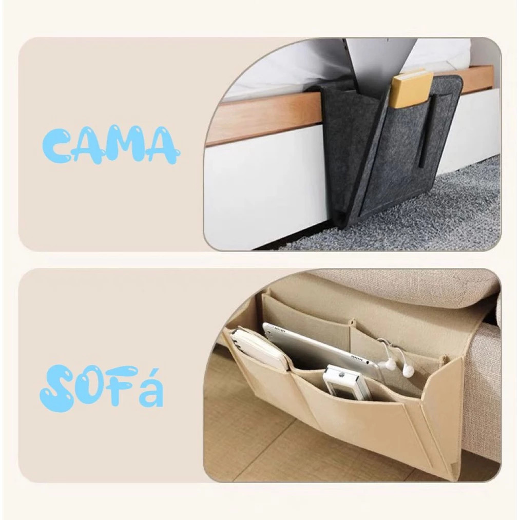 Organizador de Cama ou Sofá com Bolsos em Feltro para Controle Celular Livros e Acessórios