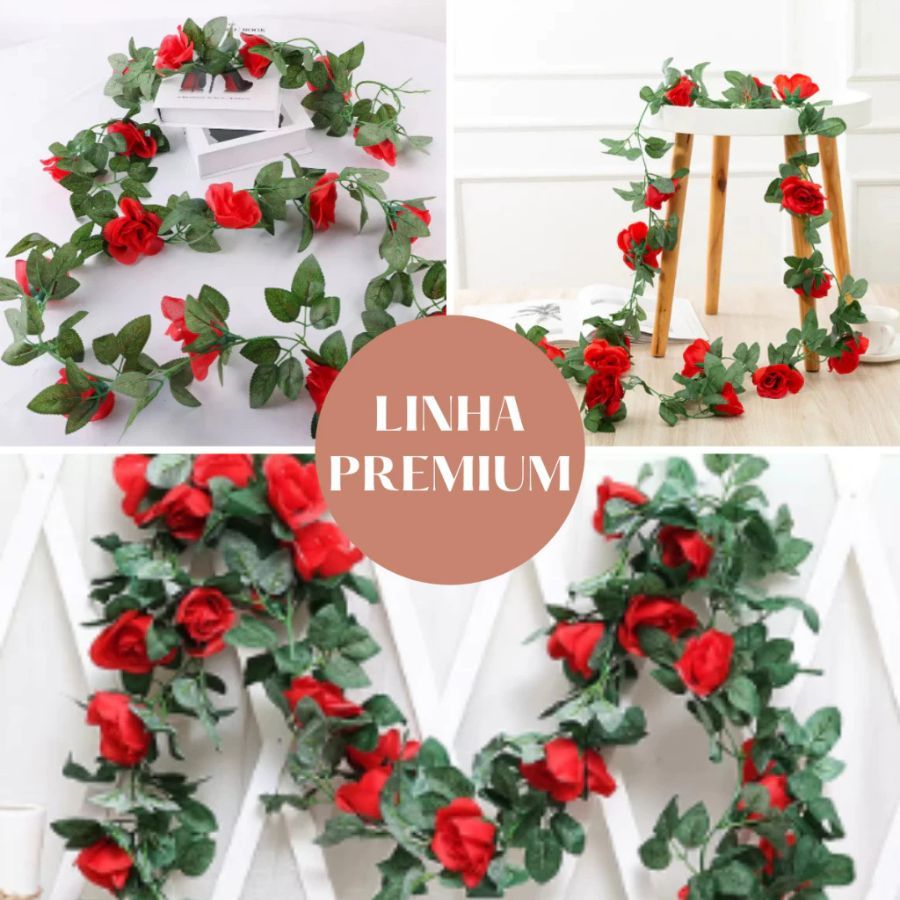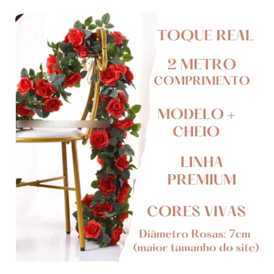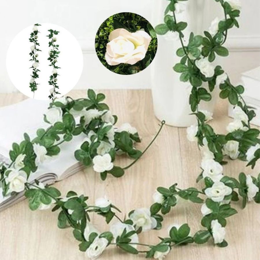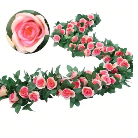 Corrente de Rosa Flor Artificial 2M P/ Decoração Casamento, Arranjos, Decorar Festas e casa