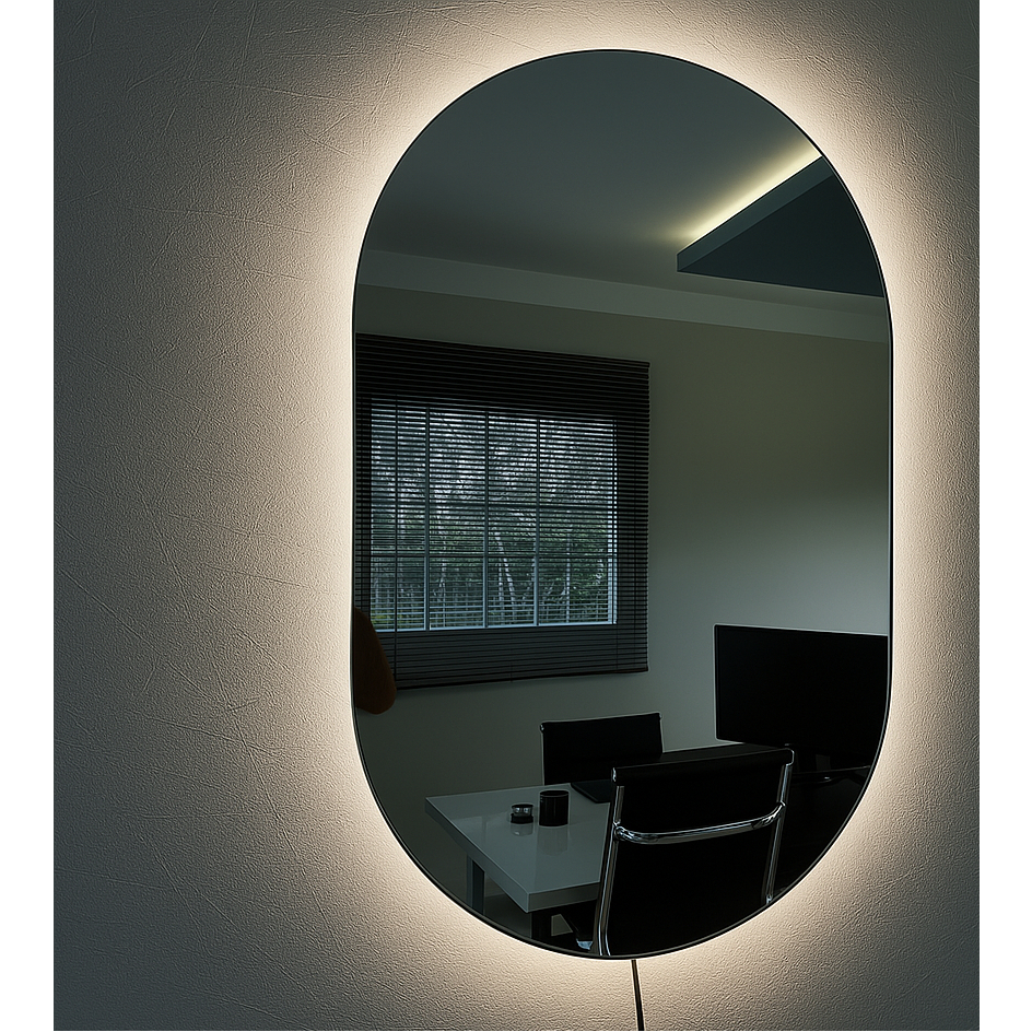 Espelho Oval Luz Led Com Fonte 110/220V Espelho Moderno Decoração Hall Salao Envio Full