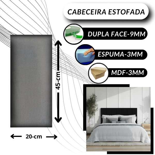 Kit Com Até 15 Placas de Cabeceira Modular Estofada 45x20cm Cama Solteiro Casal Queen King Envio24H