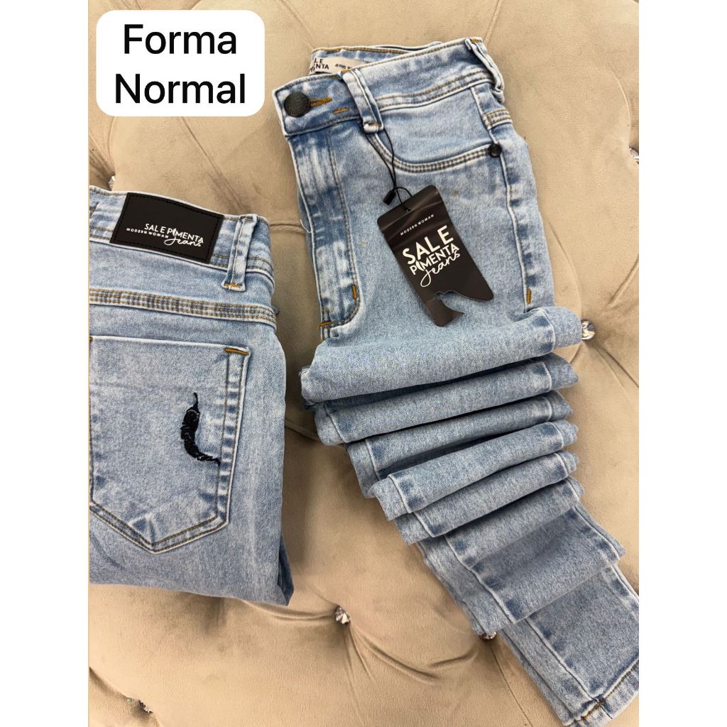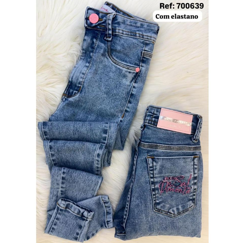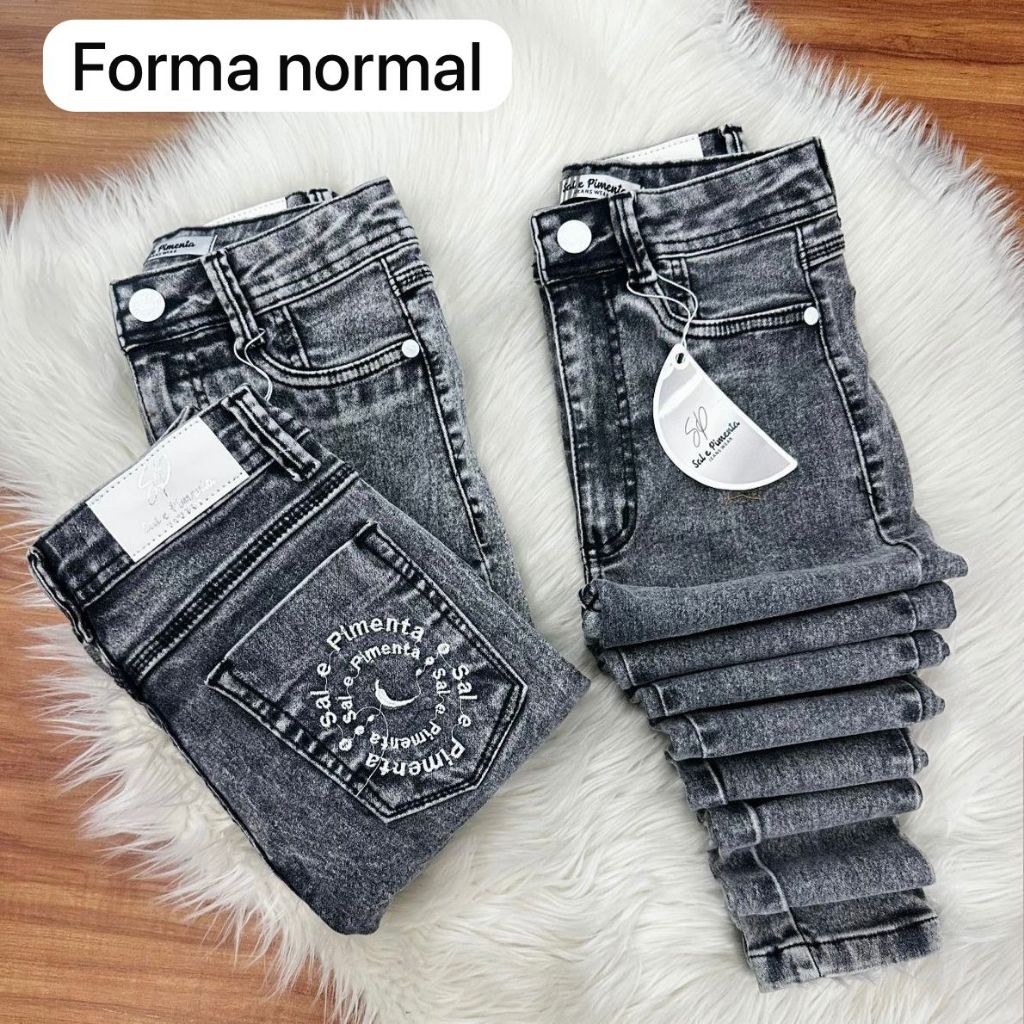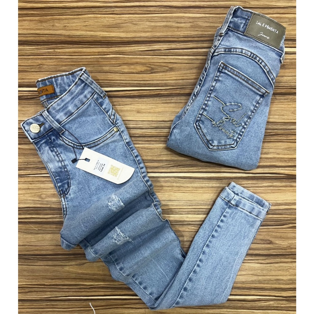 Calça Feminina Skinny Jeans Básica Bordada Sal e Pimenta - Pimenta Doce Original Cintura alta Elastano