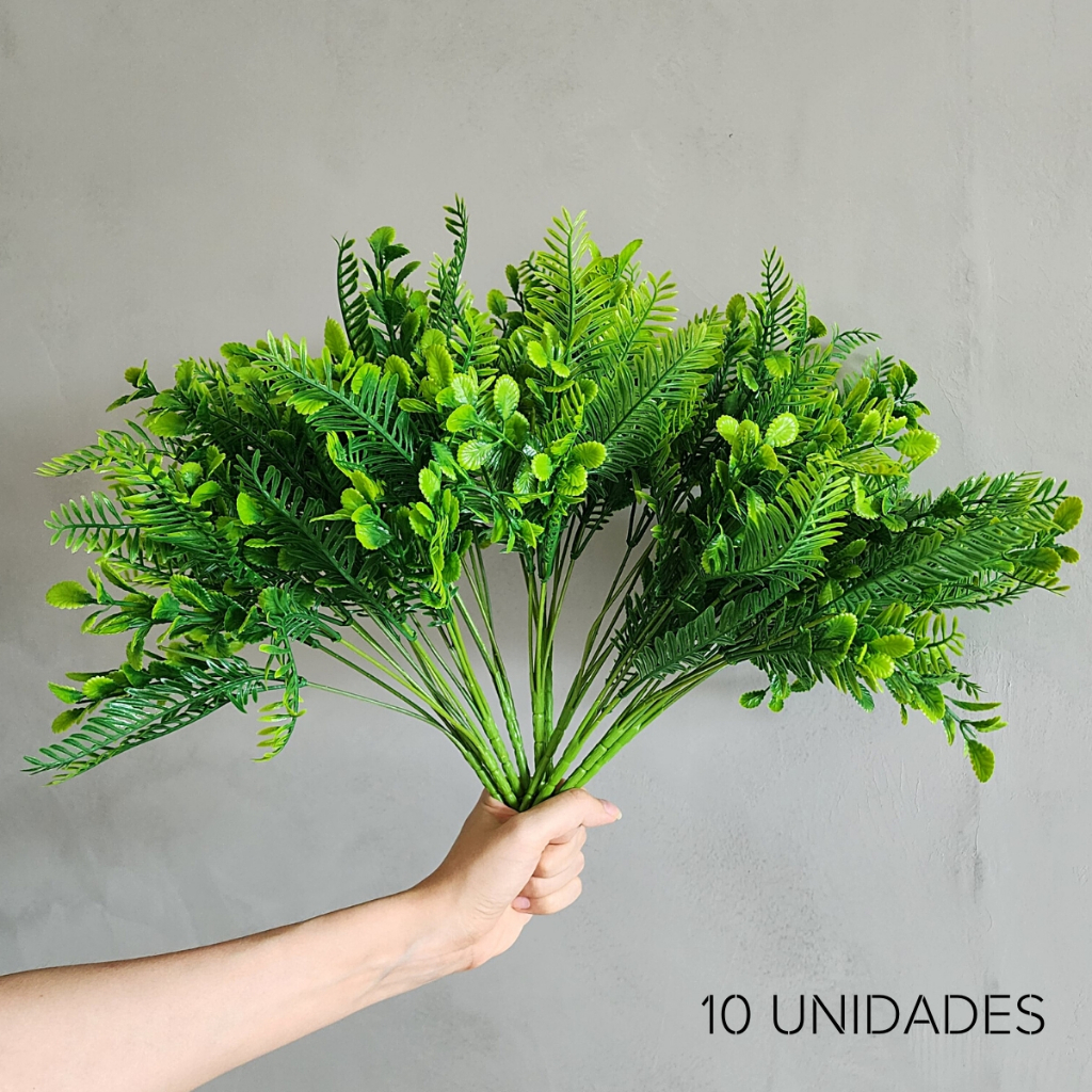 Kit Com 10 Plantas Artificiais Decorativas Samambaia Folhagem Decoração Para Muro Inglês