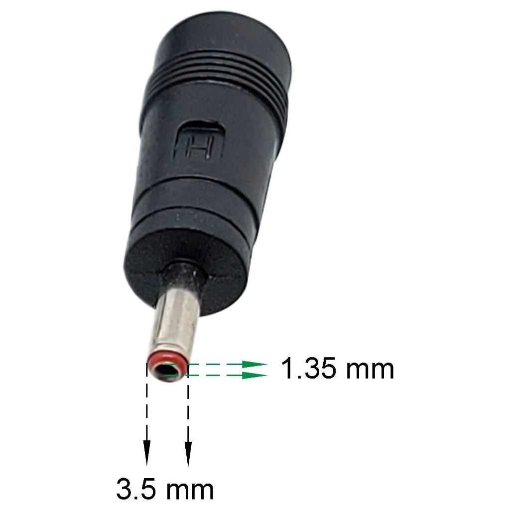 Adaptador plugue mini p4 macho 3.5mm negativo 1.35 mm positivo x P4 F 5.5 mm 2.1 mm