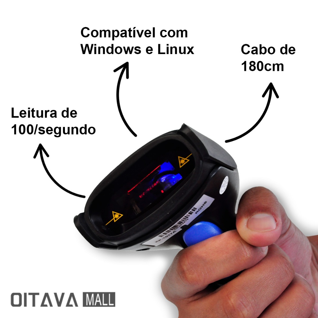 Leitor de Código de Barras com Fio USB Barcode Scanner Laser 100 Leituras Leve Rápido Windows Linux