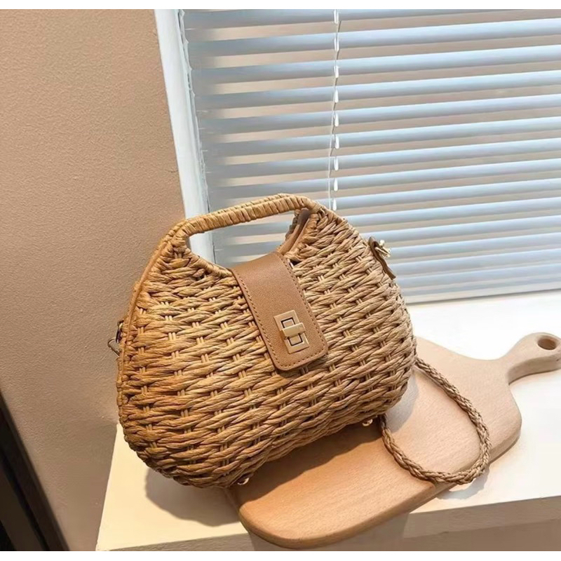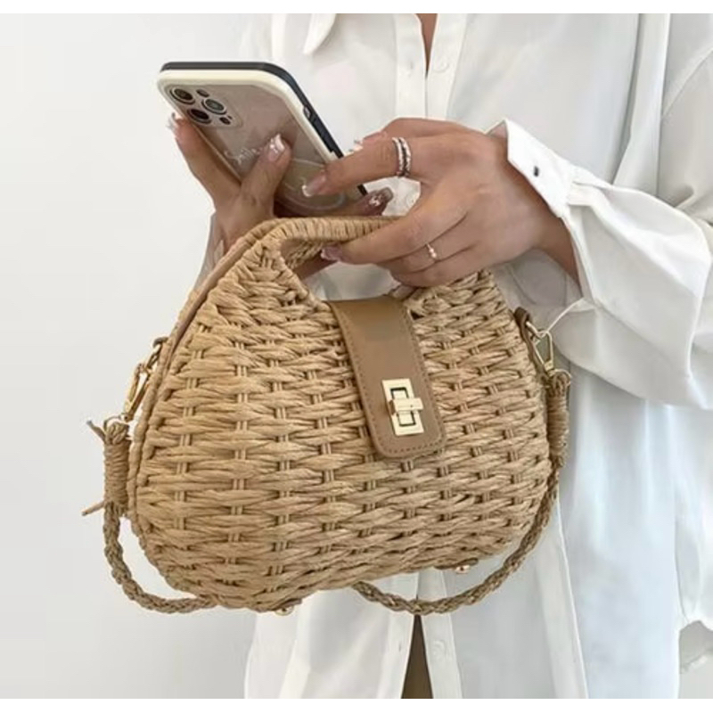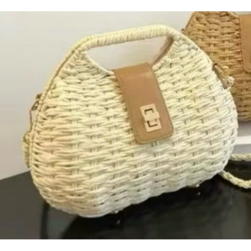 Bolsa Feminina Estilosa Palha Praia Sintetica Versatil Verao