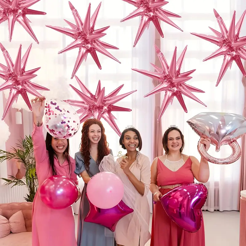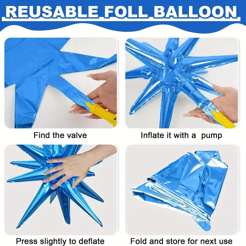 Kit Com Balões Metalizado Estrela Sputnik 50Cm Decoração Festa Natal Ano Novo 14 Pontas Explosão