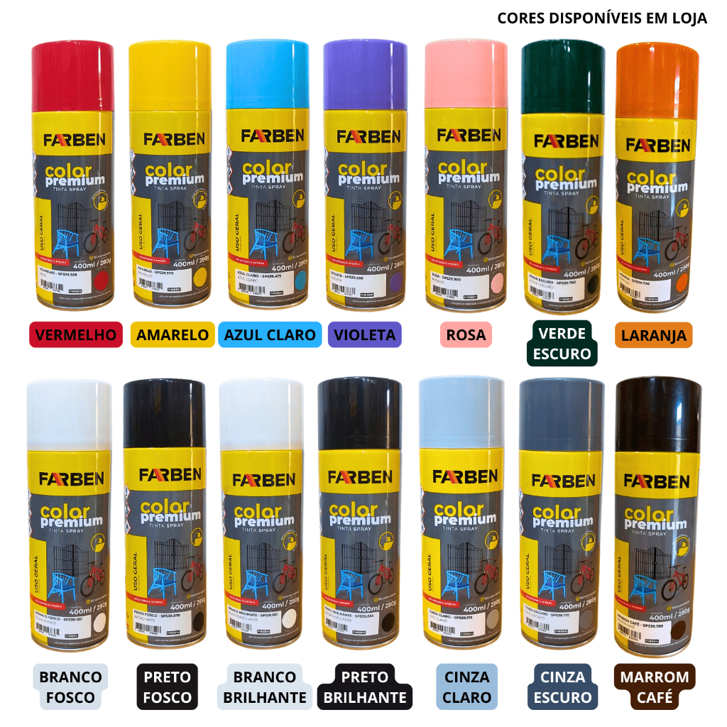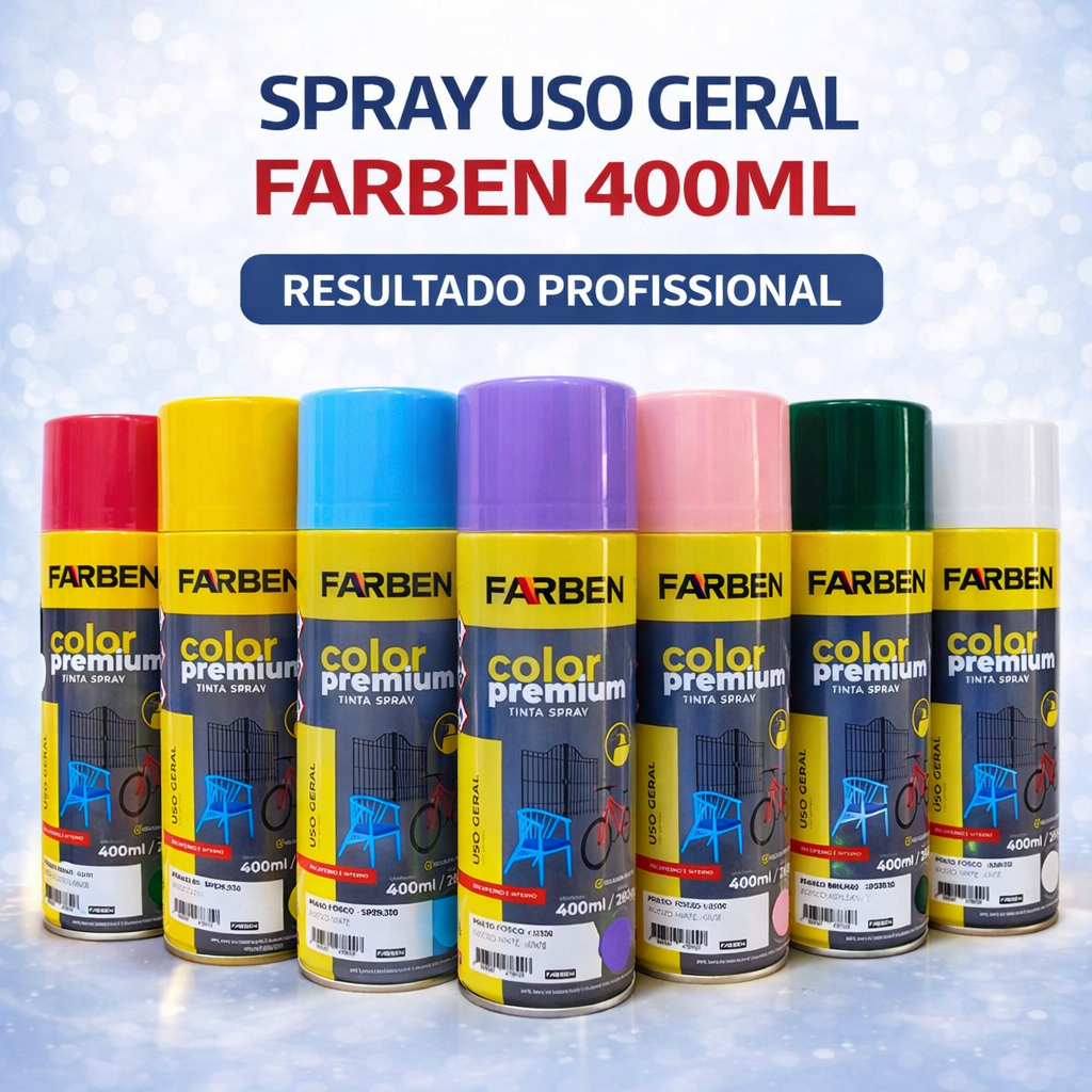 Spray Tinta Uso Geral Farben 400ml – Acabamento Uso Profissional e Doméstico | Várias Cores
