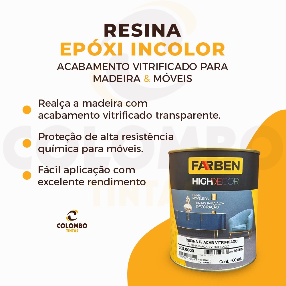 Kit Resina Epóxi e Catalizador/Endurecedor - Incolor para Madeira Acabamento Vitrificado FARBEN
