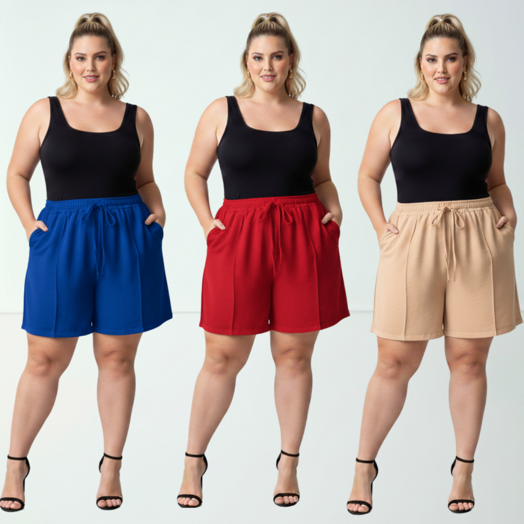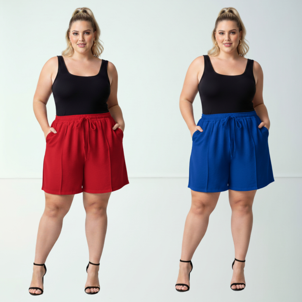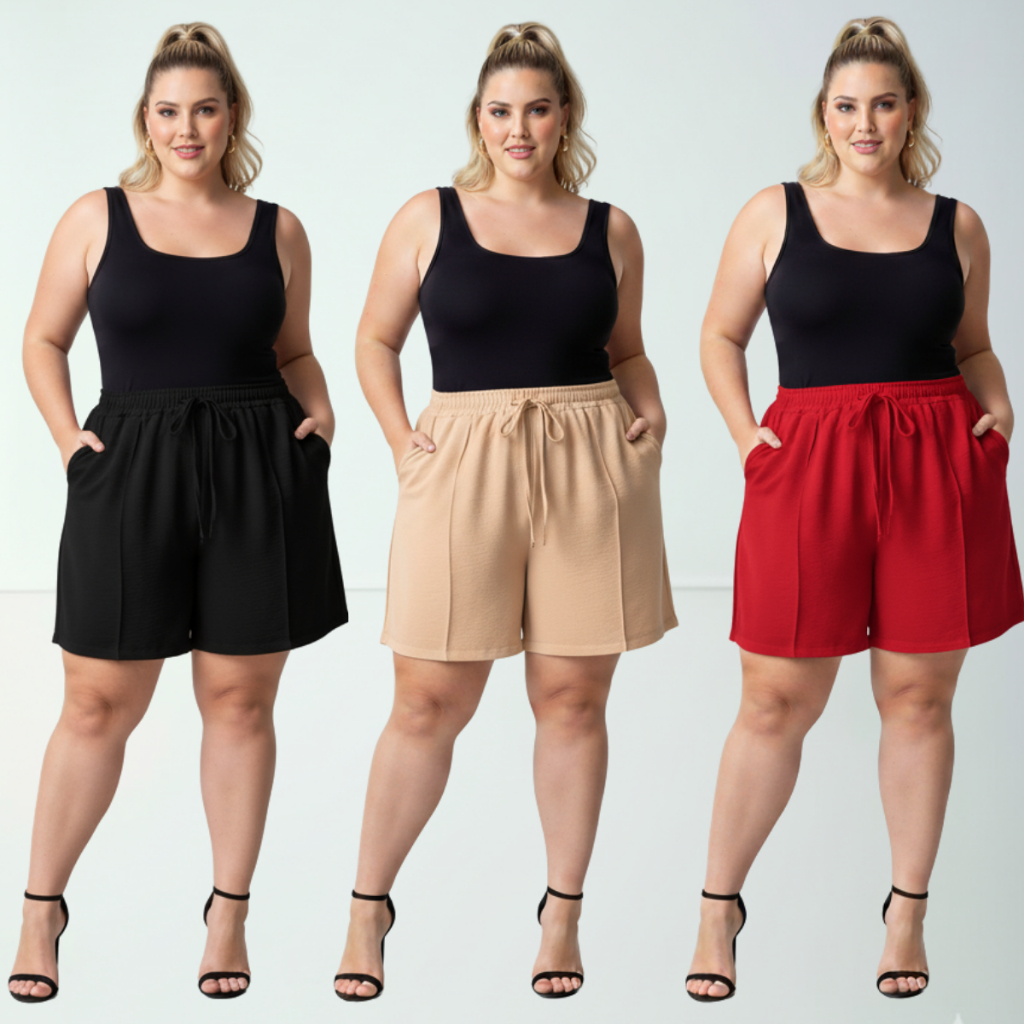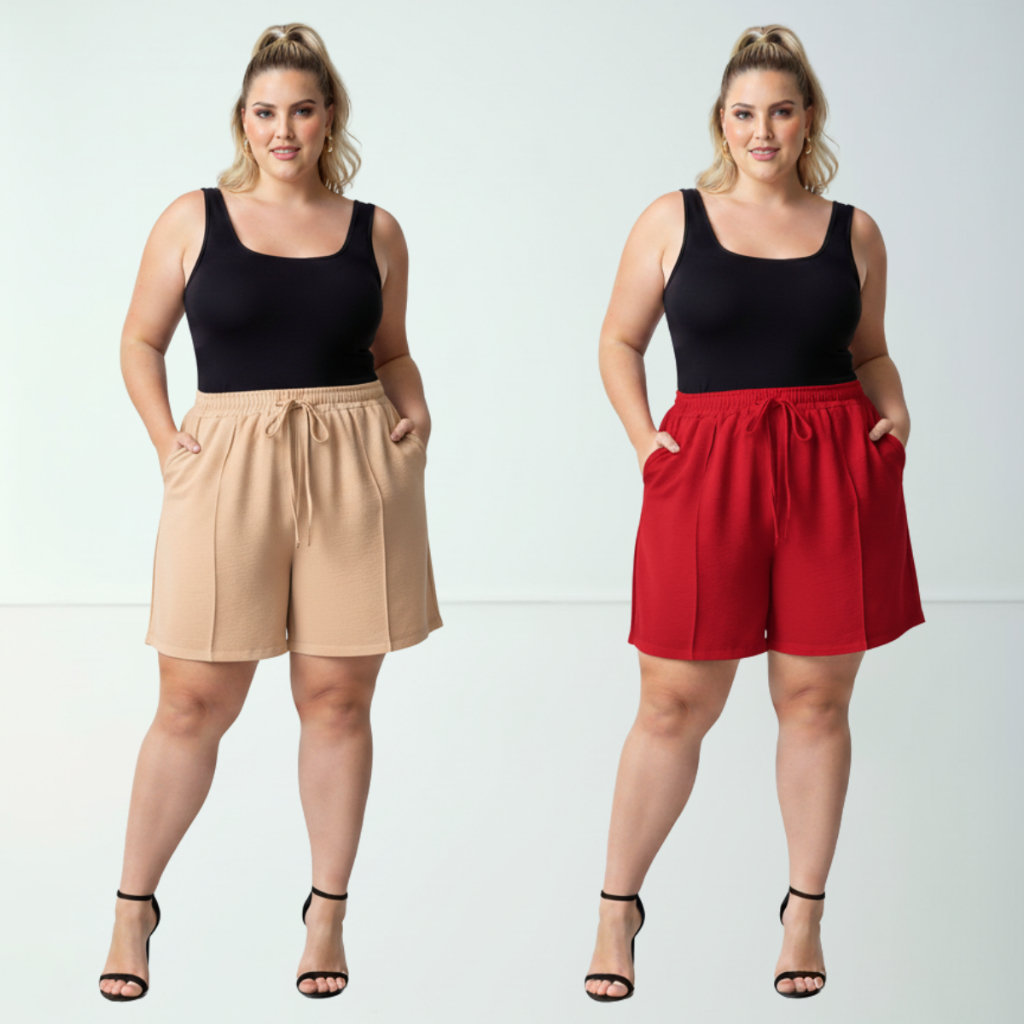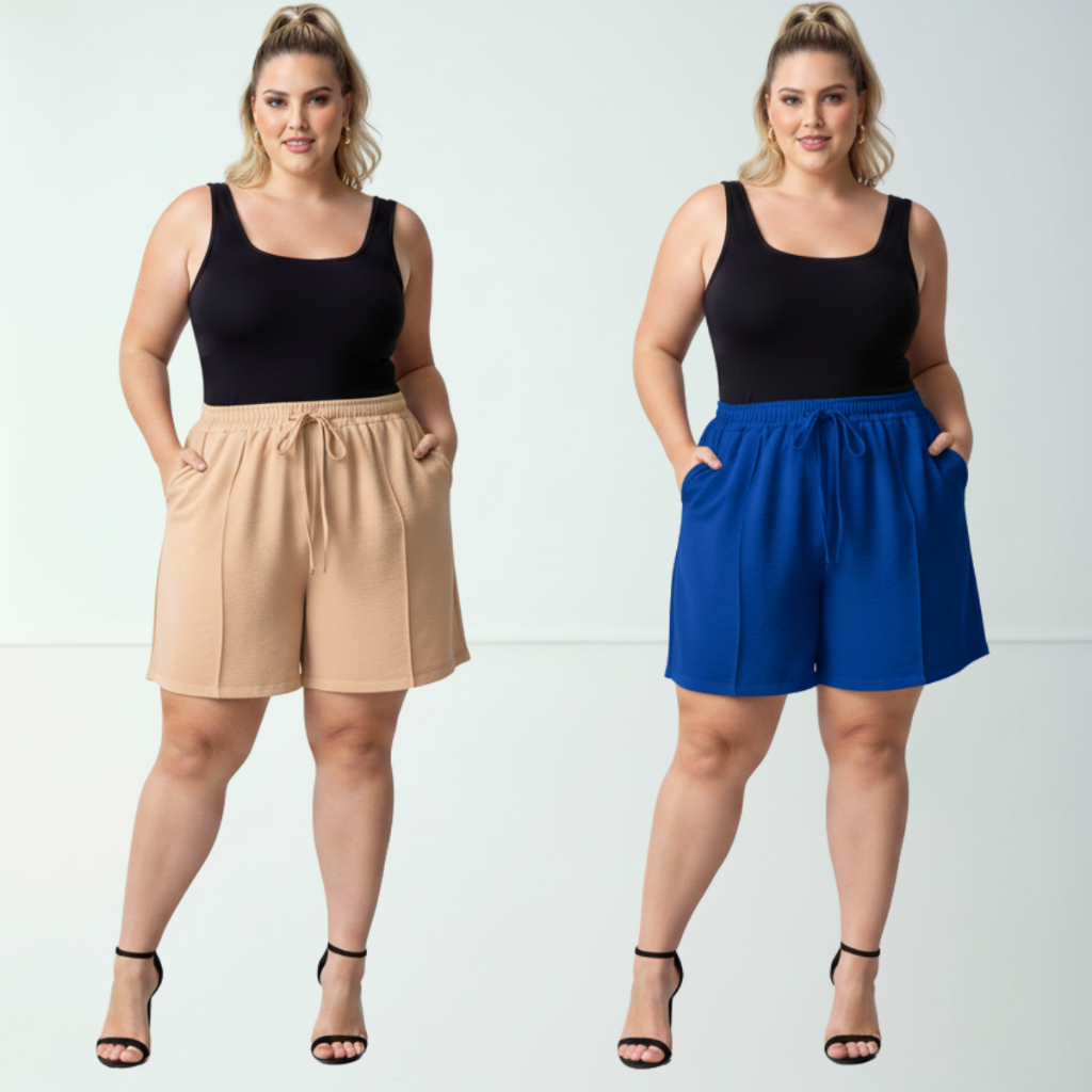 Short Duna Feminino Plus Size tecido Leve Para Verão Soltinho Cintura Alta, Bermuda, G1,G2,G3, G4