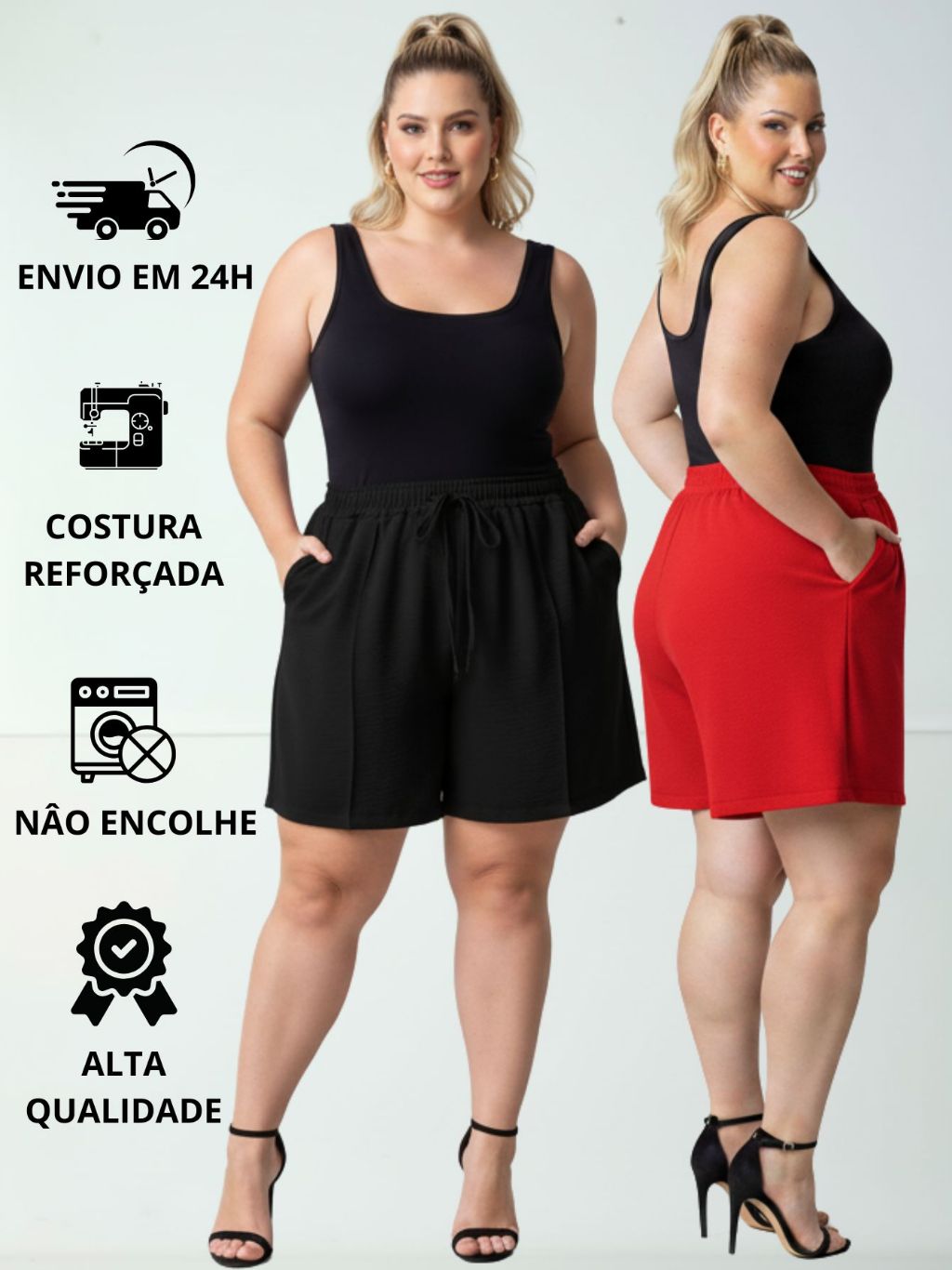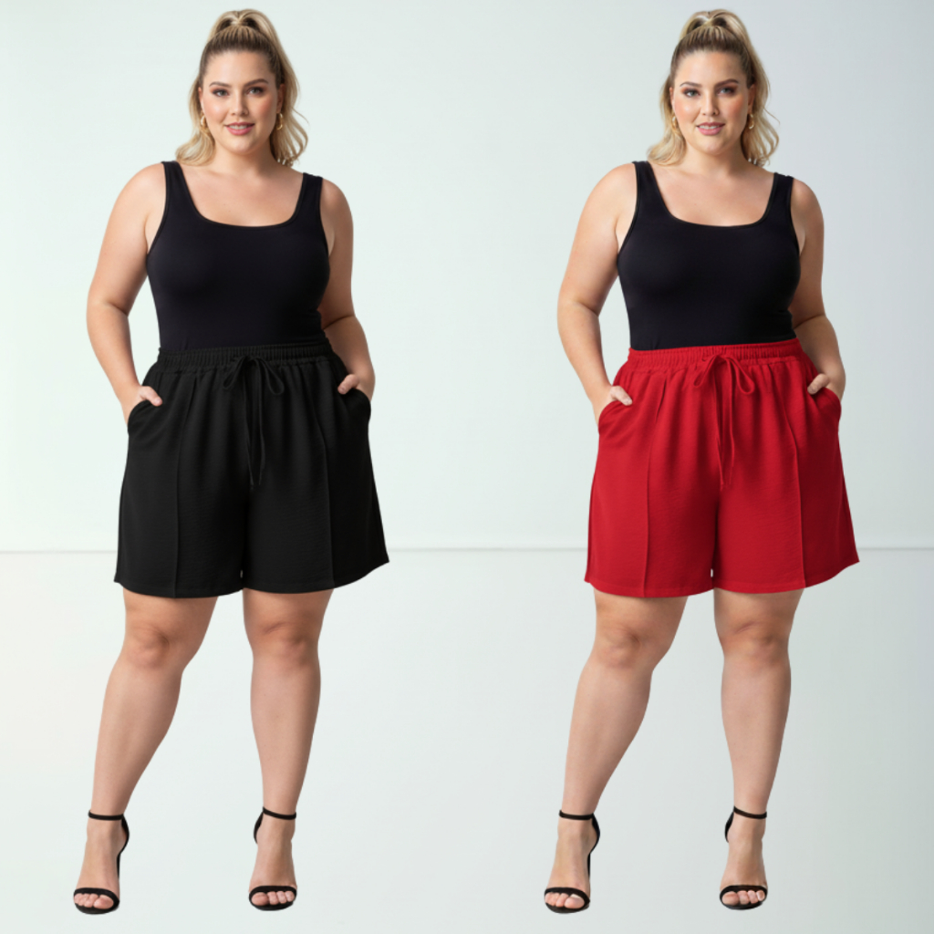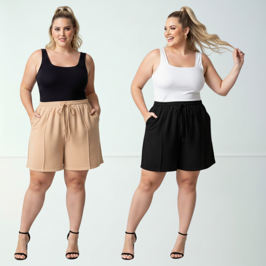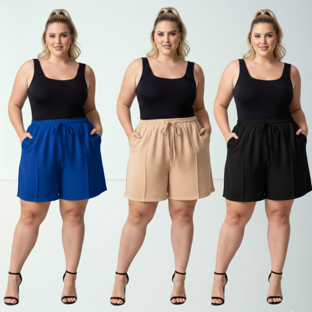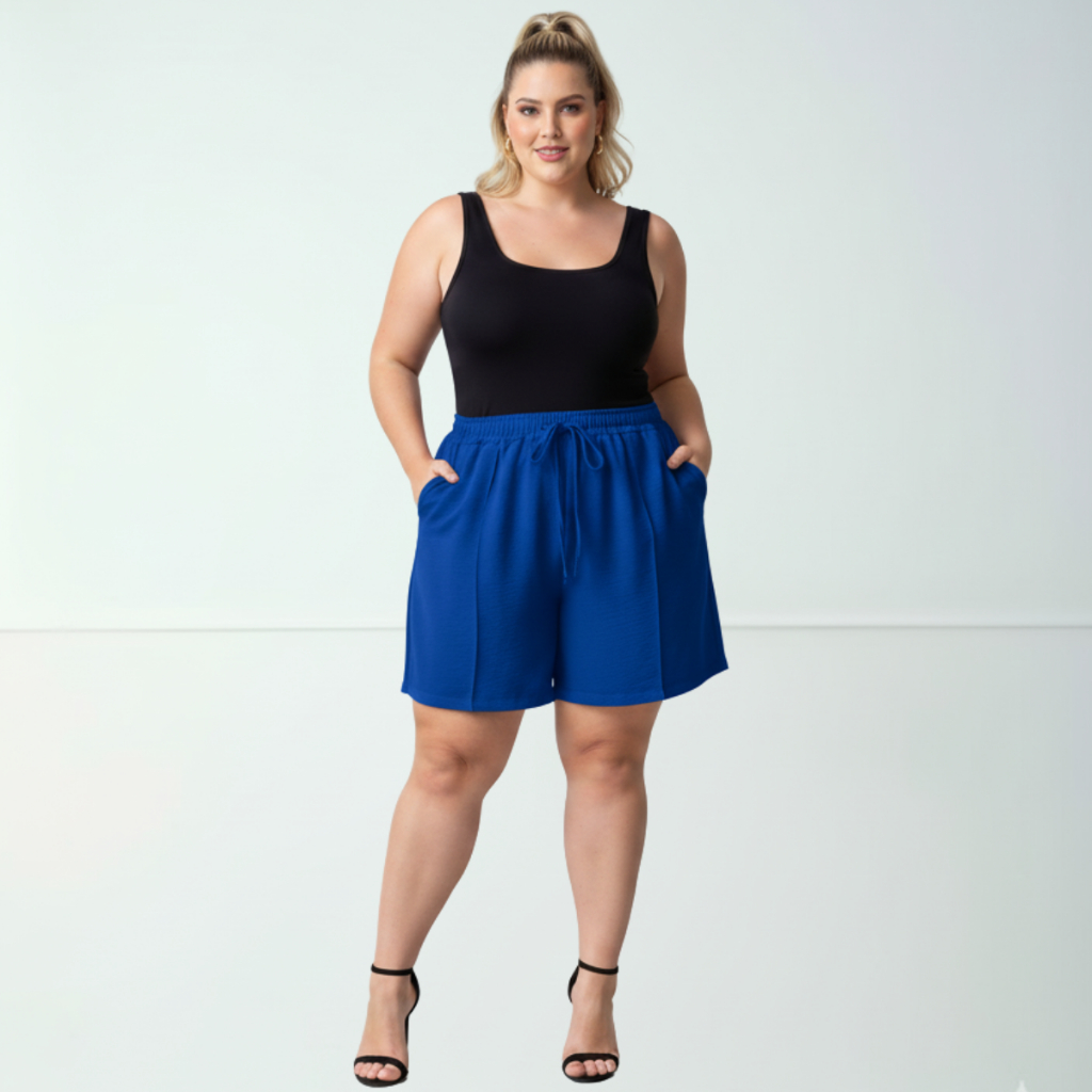 Short Duna Feminino Plus Size tecido Leve Para Verão Soltinho Cintura Alta, Bermuda, G1,G2,G3, G4