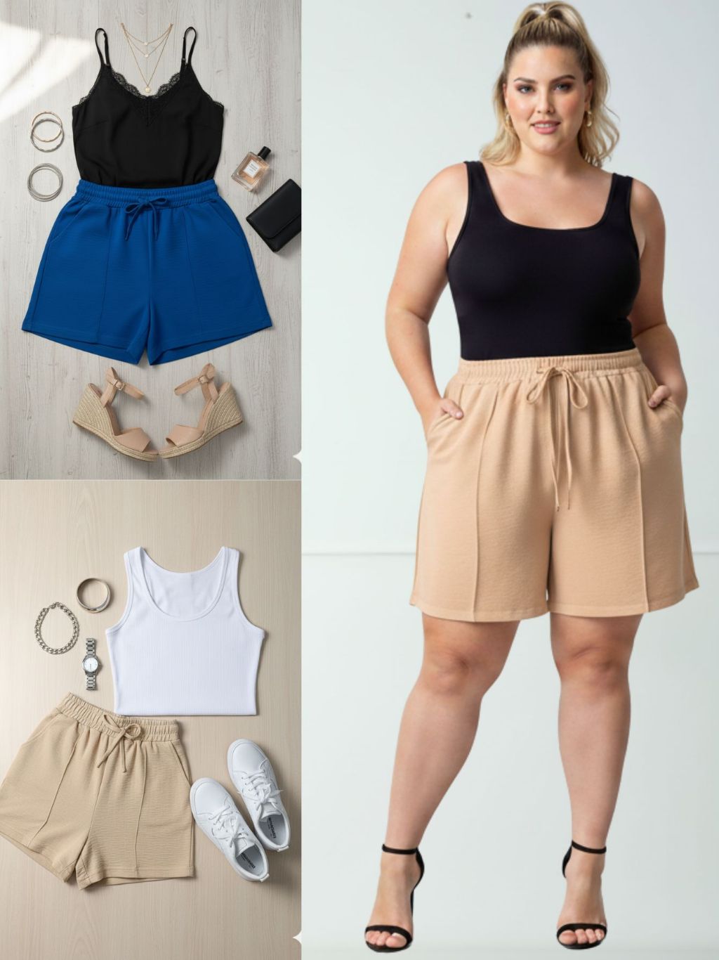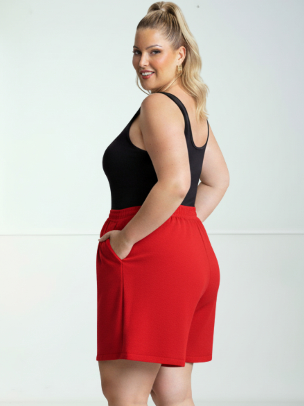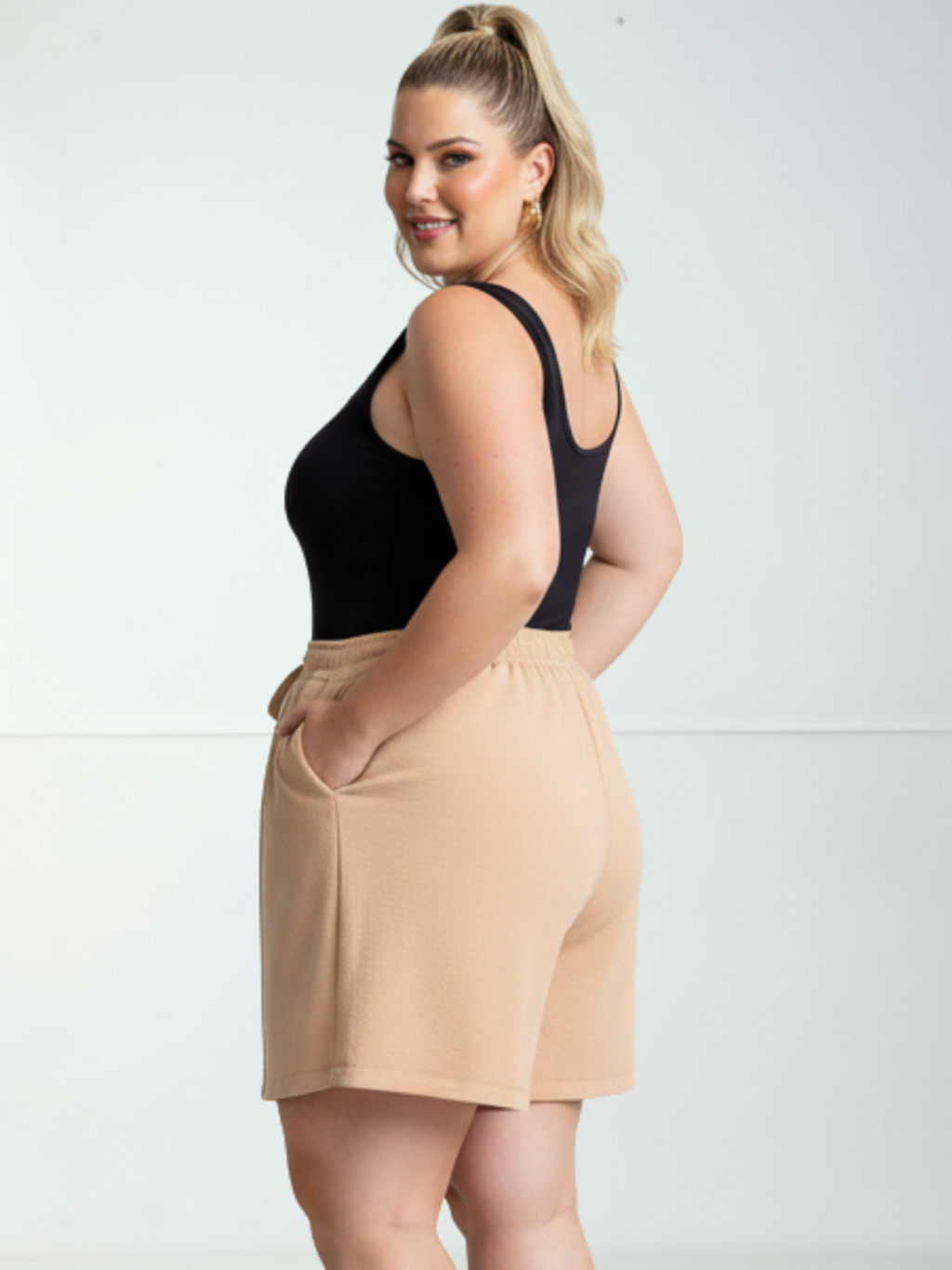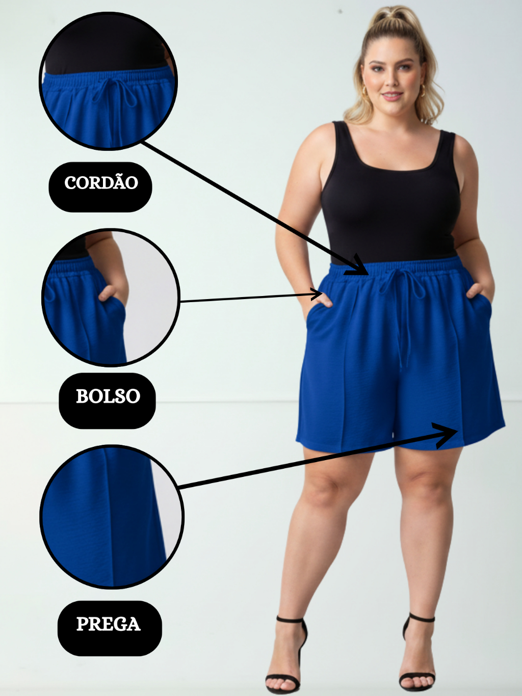 Short Duna Feminino Plus Size tecido Leve Para Verão Soltinho Cintura Alta, Bermuda, G1,G2,G3, G4