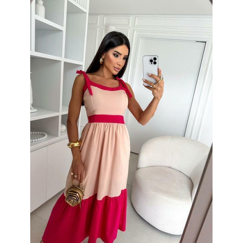 Vestido Tricoline Bicolor (Pink)